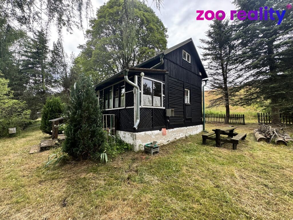 Vstupními dveřmi vejdeme do chaty a stojíme na verandě, ze které vedou dveře do koupelny s toaletou a do obytné části - kuchyně a pokoje a dále schody vystoupáme do obytného podkroví, které poskytuje dostatek prostoru pro spaní ve Vašem budoucím víkendovém útočišti. Užitná plocha nemovitosti činí 88 m², což zajišťuje pohodlné a příjemné užívání chaty. Topení je řešeno kamny na tuhá paliva, teplou vodu zajišťuje elektrický bojler.