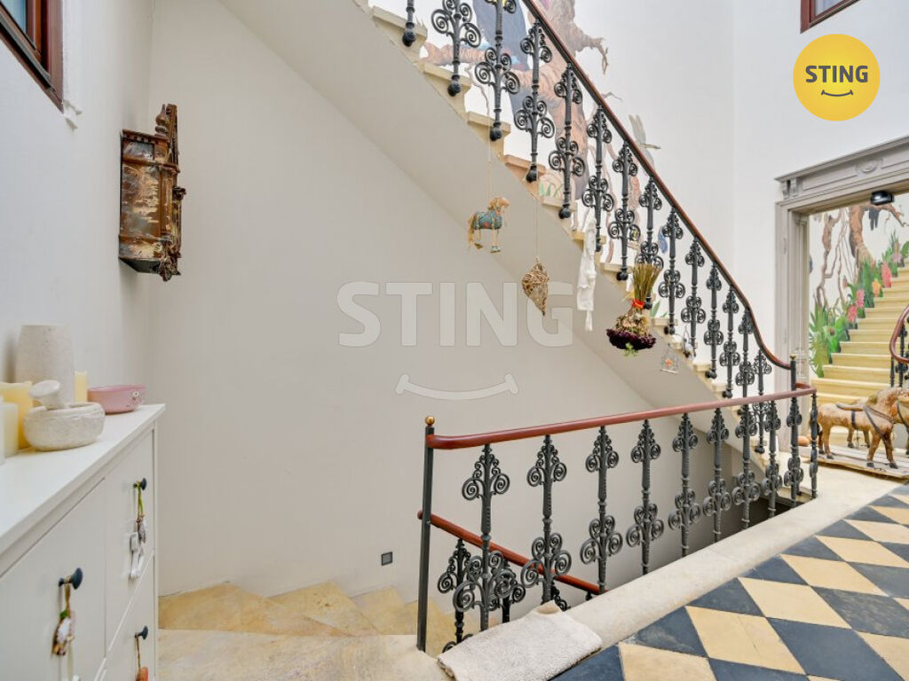 Celým domem prochází elegantní centrální schodiště, které propojuje jednotlivá patra a tvoří dominantu interiéru.