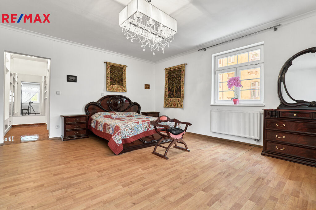 Menší ložnice má vstup na balkon a muže posloužit jak dětským pokojem, tak i pracovnou, nebo pokojem pro hosti.