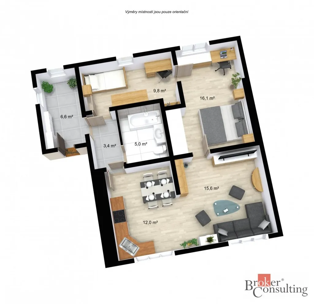 V horním patře je možné vytvořit půdní vestavbu či další rozšíření až o jednu bytovou jednotku.