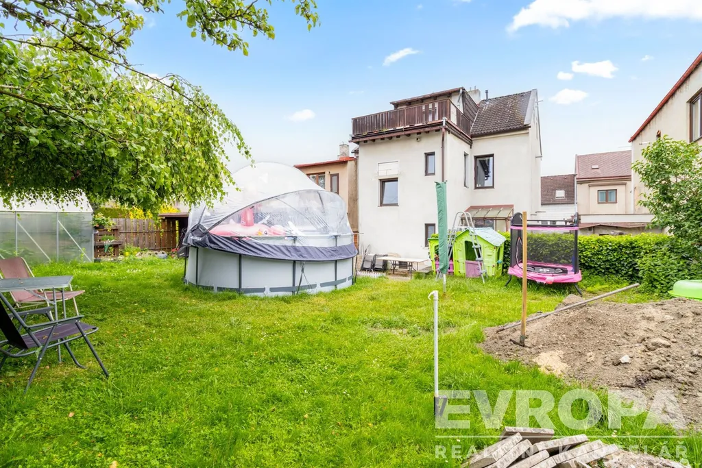 K rodinnému domu náleží pozemek o celkové velikosti 460 m² a garáž o zastavěné ploše 21 m².