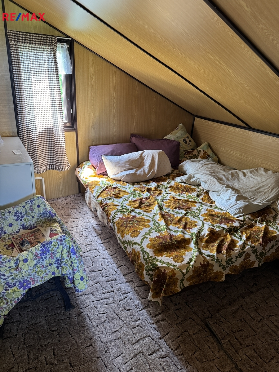 V 1.NP je vstupní chodba a hlavní obytný prostor propojený s kuchyní. V patře jsou dvě samostatné ložnice a úložný prostor.