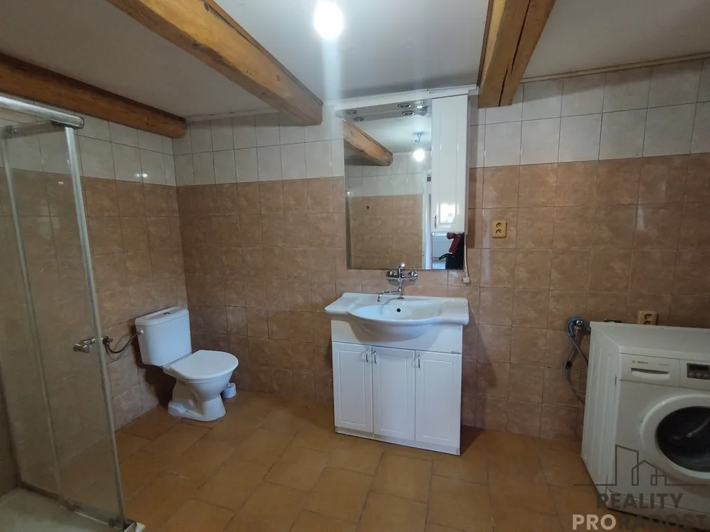 - v patře pak velký pokoj, kuchyňský kout, koupelna se sprchovým koutem a wc, pokoj a vstup na půdu, kde je možné vybudovat velký pokoj s balkónem či terasou do zahrady