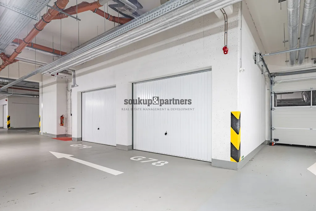 K bytu přísluší nadstandardně velké uzavřené parkovací stání G78 a sklep (obojí již v ceně), nacházející se v 1. podzemním podlaží.