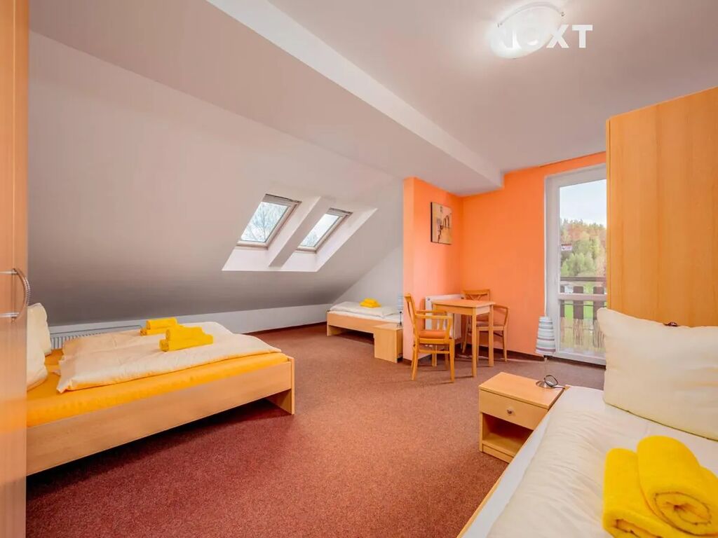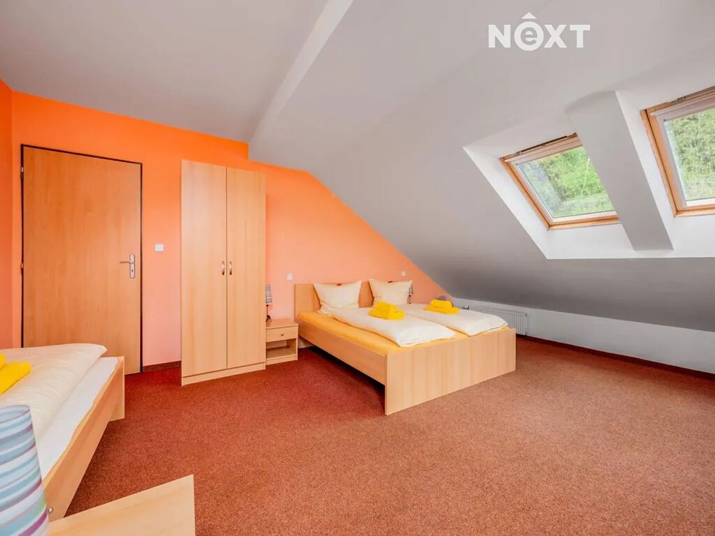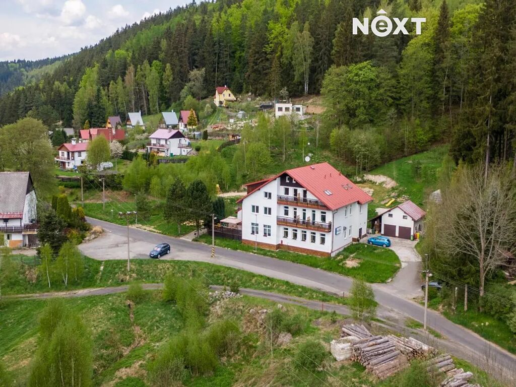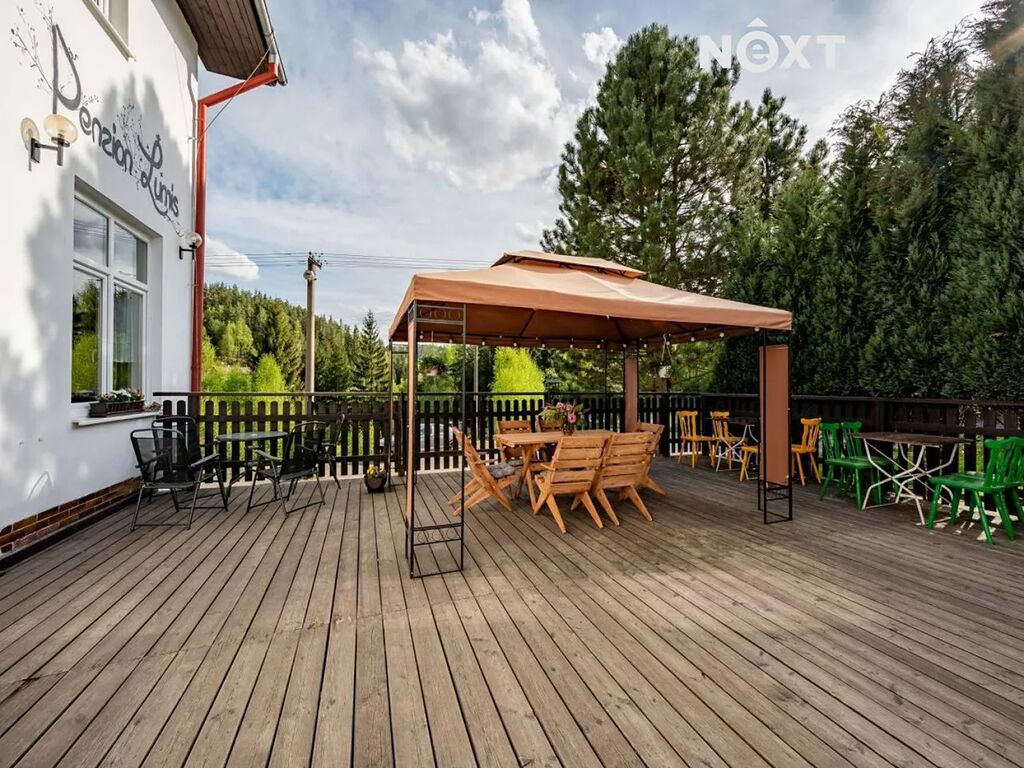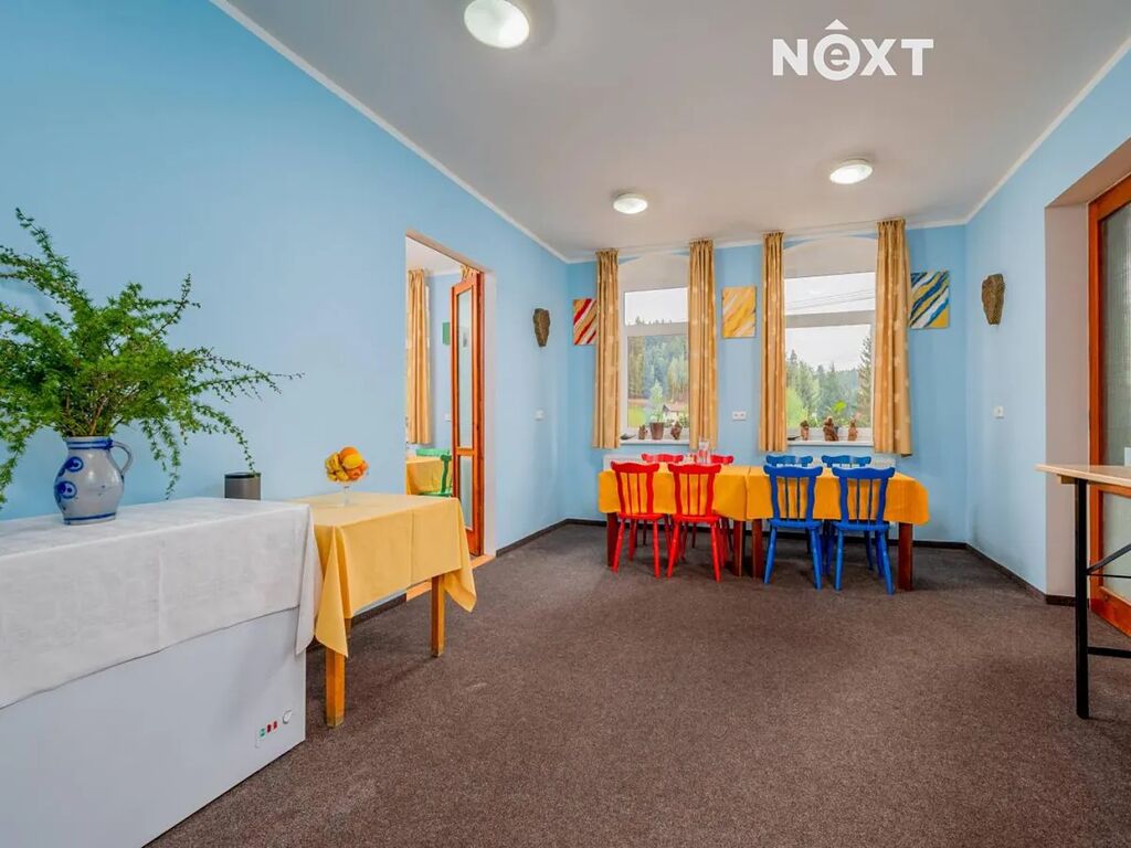 Exkluzivně nabízíme k prodeji nemovitost s přiléhajícími pozemky v malebné obci Smolné pece, v okrese Karlovy Vary. Třípodlažní cihlová budova o užitné ploše 1.015 m2 se momentálně využívá pro provoz rodinného penzionu. Svým budoucím majitelům nabízí 15 ubytovacích pokojů, plně vybavenou kuchyni, venkovní zahrádku s posezením, garáž a pozemky o celkové výměře 5.533 m2. Dům je zkoulaudovaný jako stavba občanské vybavenosti. V přízemí budovy se nachází restaurace s barem a kuchyní - jedná se o tři místnosti, vybavenou kuchyň s přípravnou jídel, skladové a technické místnosti. V přízemí domu je dále k dispozici recepce, zázemí a toalety. Venkovní zahrádka/terasa s krásným výhledem na okolní přírodu a vlastní pozemky. Druhé a třetí podlaží domu nabízí dohromady 15 vybavených pokojů o rozloze cca 15 – 25 m2. Každý pokoj má k dispozici vlastní koupelnu s toaletou a sprchovým koutem a šest z nich má navíc vlastní balkon s krásným výhledem na okolní krajinu. Na každém patře se dále nachází několik úklidových místností. Přilehlé pozemky do budoucna nabízí zbudování okrasné zahrady, dětského hřiště, či dalších parkovacích míst. Dále je zde k dispozici dvoupatrová, zděná garáž pro 2 vozidla a skladovací prostor ve druhém podlaží. Přístupová komunikace k domu je obecní. Budova je vytápěna tepelnými čerpadly, které zároveň slouží i k ohřevu vody, která je zajištěna ze dvou studen na vlastních pozemcích. Odpad je momentálně řešen bioseptikem se stavebním povolení na ČOV. Střešní sedlová krytina stará max 20 let, krovy v dobrém stavu. V roce 2008 zde probíhala nákladná rekonstrukce interiéru (plastová okna, podlahy, obložení a výbava koupelen, el. rozvody a vytápění). V roce 2021 proběhla instalace nových tepelných čerpadel na vytápění a ohřev vody, spolu s novou fasádou na jedné polovině domu. Měsíční náklady na provoz domu cca 19.000,-/měs. (elektřina a vytápění). Nejbližší občanská vybavenost a doprava je k dispozici v přilehlých obcích, jako je Nejdek (5 km), nebo Karlovy Vary (11 km). Lokalita nabízí bezpočet turistických atrakcí a možností na trávení volnočasových aktivit. Na své si přijdou i lyžaři, či běžkaři - ski areály Pernink, Merklín, či Nové Hamry jsou vzdálené cca 8 km od Smolných Pecí. Tato nemovitost je ideální pro kombinaci vlastního bydlení a podnikání, nebo bydlení pro vícegenerační rodiny. Pro bližší informace se na nás neváhejte obrátit, vřele doporučujeme prohlídku nemovitosti,. Pro komunikaci uvádějte evidenční číslo zakázky N113123.