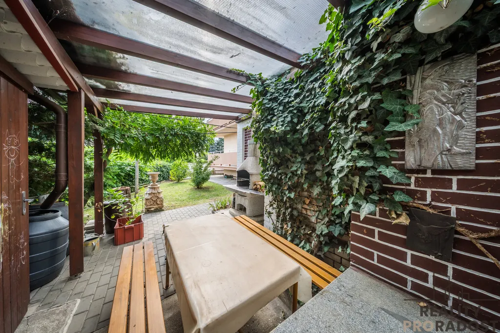 Za domem je udržovaná zahrada, která nabízí dostatek prostoru pro odpočinek a zahradničení a v přední části zahrady je vybudováno pro relax kryté posezení s grilem a udírnou.
