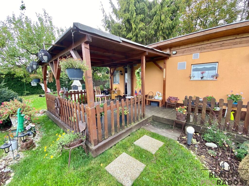 Na zahradě je umístěný mobilheim s terasou a posezením. Dispozičně je řešený jako 3+1, je zde prostorný obývací pokoj, kuchyně vybavená kuchyňskou linkou a jídelním koutem, dvě zařízené ložnice vestavěným nábytkem, koupelna se sprchovým koutem, umývadlem a WC. Je zde také úložný prostor s bojlerem. Mobelheim je zateplený, je připojený na vodu a elektřinu, odpad je sveden do jímky.