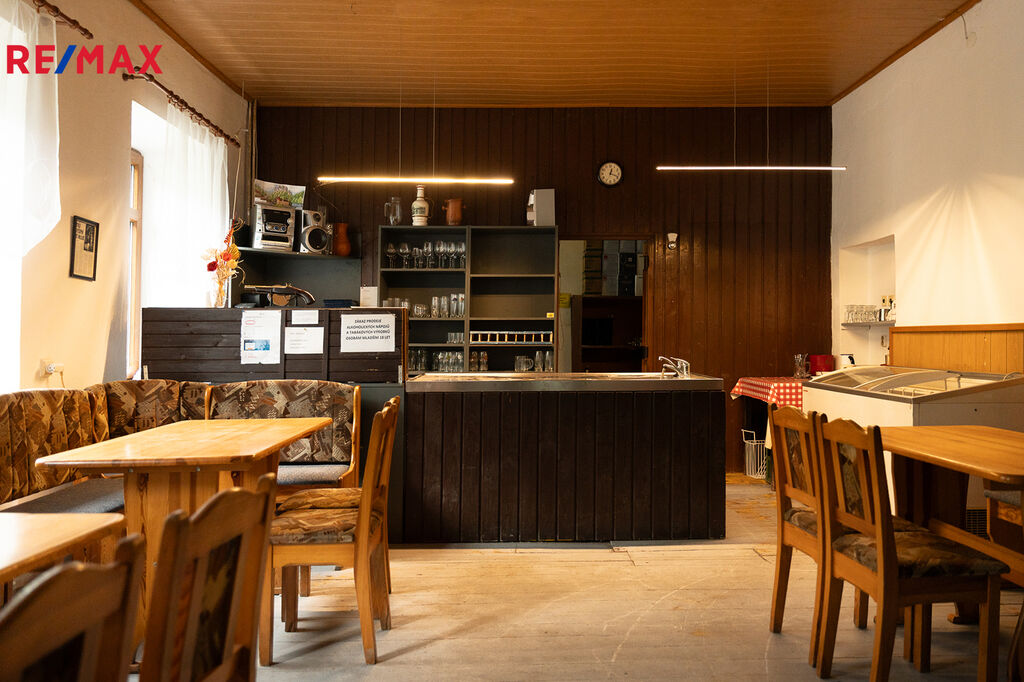 V budově s restaurací a apartmány je k dispozici 5 pokojů s vlastním soc. zařízením, (ubytovací kapacita 21 osob), v přízemí se nachází restaurace s gastro kuchyní a zázemím, místnost s výčepem (kapacita 16 osob), malý sál (30 osob) a velký sál (60-70 osob), před vchodem do restaurace je venkovní zastřešená zahrádka (30 osob).