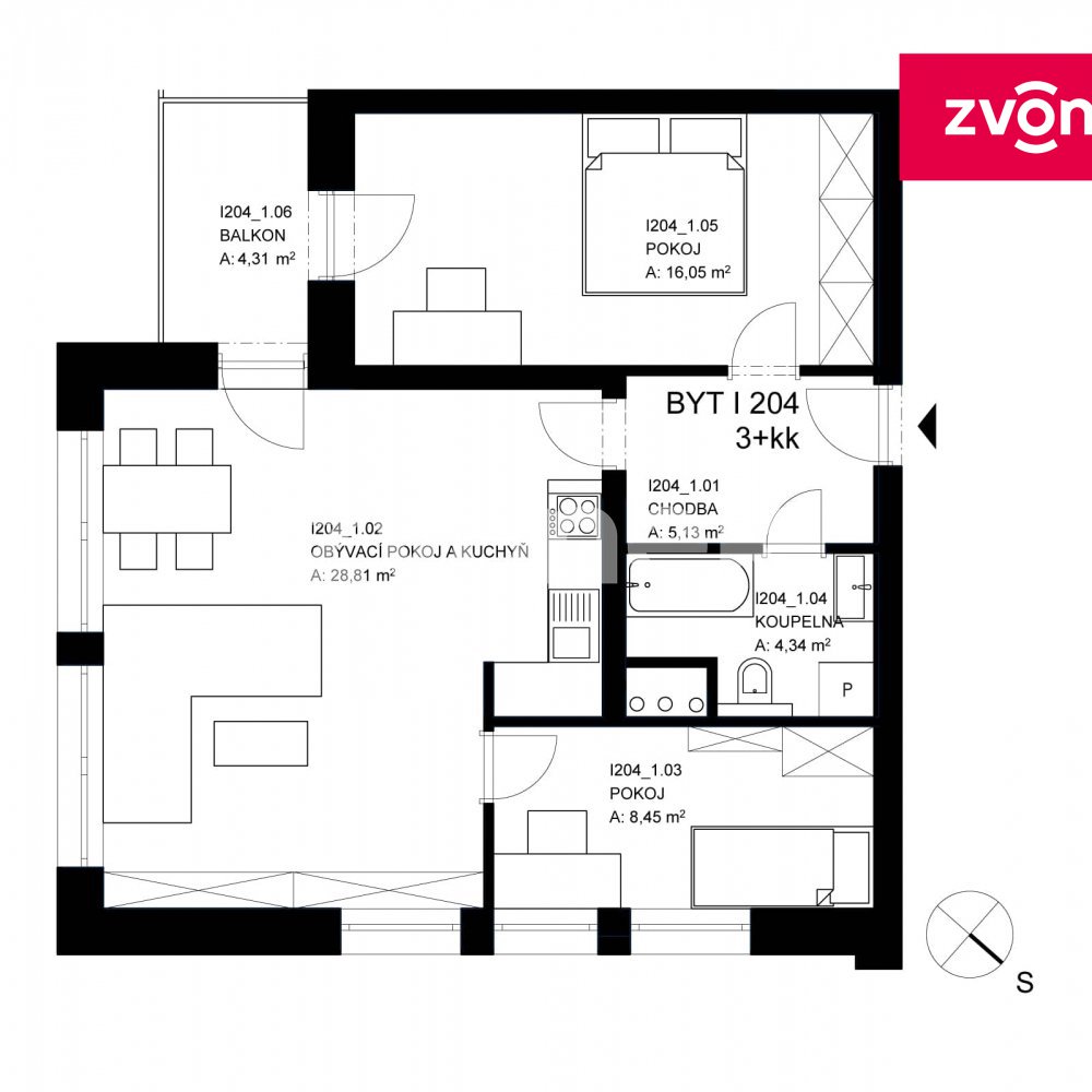 Nabízíme k pronájmu prostorný byt o dispozici 3+kk v novostavbě bytového domu na ulici Komenského ve Fryštáku. Byt o celkové výměře 71 m² se skládá ze vstupní chodby, obývacího pokoje s kuchyňským koutem vybaveným spotřebiči (sporák, digestoř, lednice) s pracovním ostrůvkem a vstupem na balkon, dvou samostatných ložnic, koupelny s vanou a toaletou a také sklepního prostoru.
