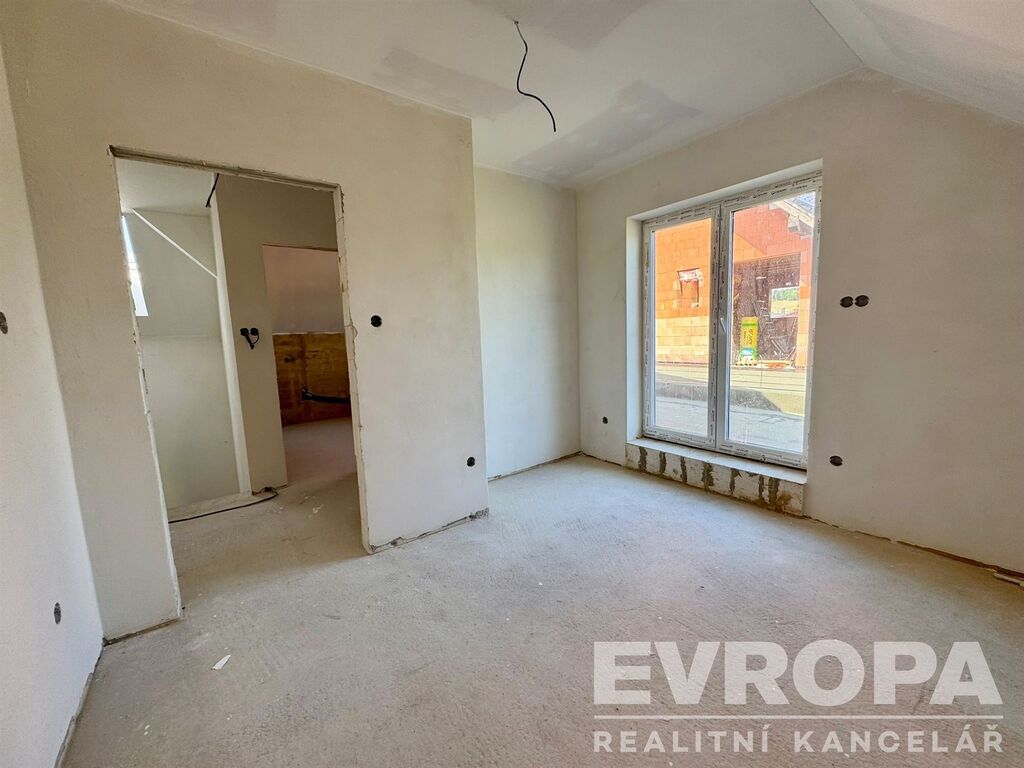 Nemovitost se prodává jako uzavřená hrubá stavba viz fotografie. V tomto domě je již hotové schodiště a v 2.NP jsou hotové sádrokartonové podhledy, zateplené stropy, a hotová dispozice. Možnost dokončení na klíč dle vlastních představ s využitím veškerých moderních technologií. Umístění domů v obci Čižice nabízí úžasné panoramatické výhledy.