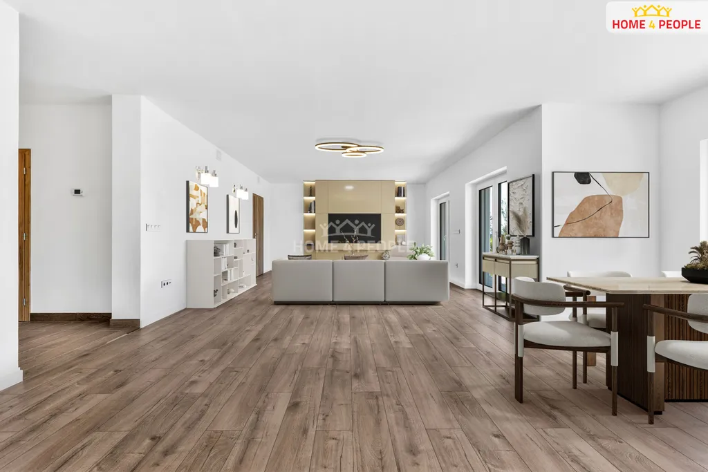 Přízemí tvoří vstupní hala (21,39m²), spíž na uskladnění potravin (2,31m²), technická místnost(3,26m²), dva pokoje (10,26 m² a 14,89m²), dvě koupelny se sprchovým koutem a WC(5,78m² a 4,55m²) ,prostorný obývací pokoj s kuchyní(55,13m²) ze kterého je vchod na velkou slunnou terasu a zahradu.
