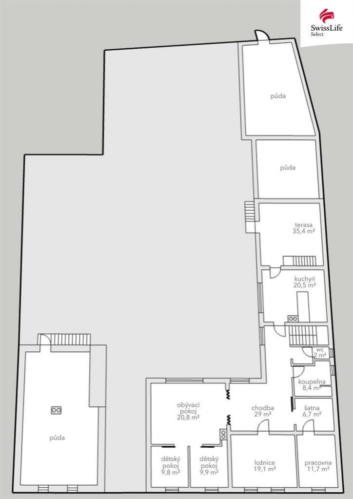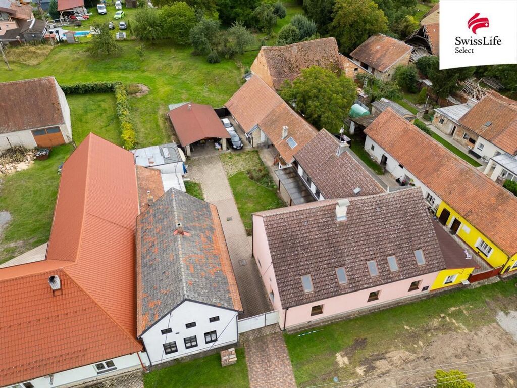 K domu patří i pozemky, které jso uv územním plánu určené k zástavbě vesnického typu a částečně jako zeleň.