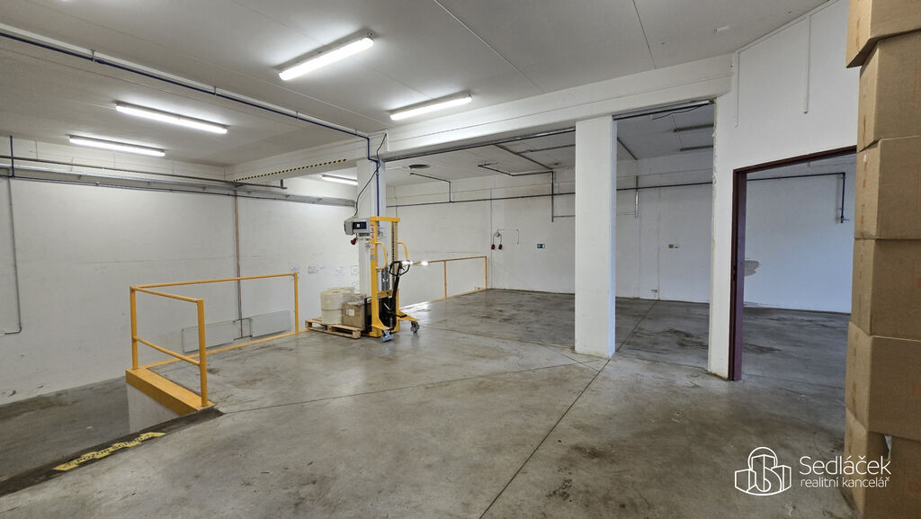 V přízemí se nachází rozsáhlé výrobní a skladové plochy s nakládací rampou a sekčními vraty pro pohodlnou manipulaci s materiálem. Jednotlivá patra propojuje nákladní výtah (nosnost 650 kg, výška nákladu 2 m).