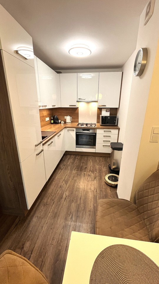 Celý byt je krásně osvětlen, zabudovány jsou zde také elektrické venkovní žaluzie.