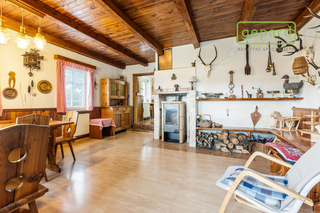 Uvnitř najdete dispozici 4+1 s malou pracovnou/komorou, prostornou jídelnou a místem, kde to voní dřevem. Dům je cihlový, ve velmi dobrém stavu, s kvalitní střechou, připravený k celoročnímu bydlení.