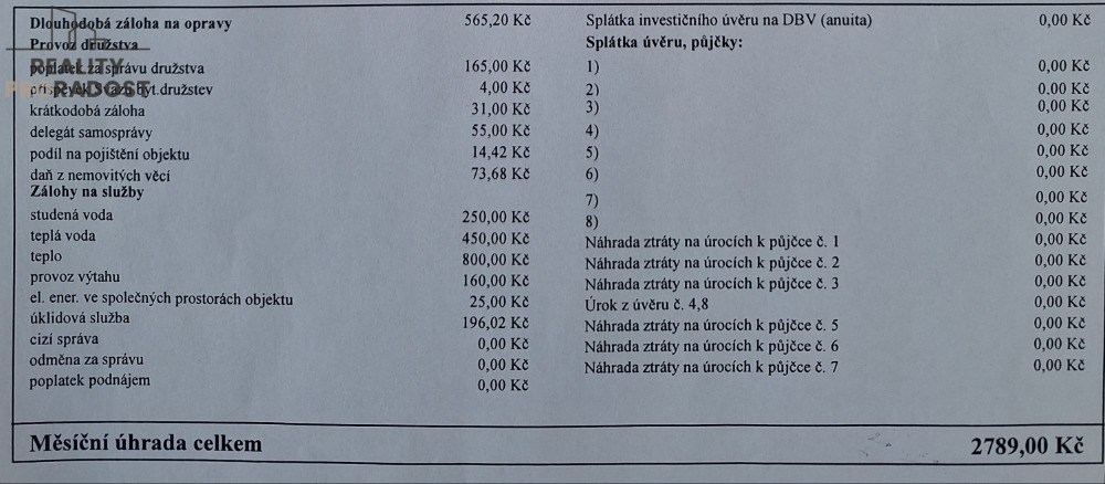 dlouhodobá záloha na opravy 565Kč.