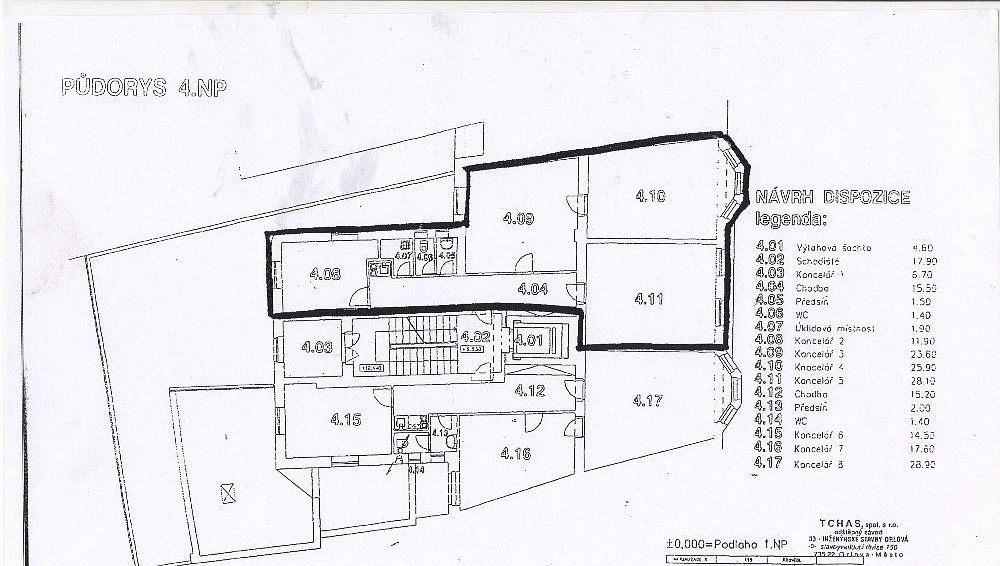 Pronájem zrekonstruovaných komerčních prostor o velikosti 110m² umístěné v 4 NP s výtahem, v lukrativní lokalitě Ostravy - Moravské Ostravy v těsné blízkosti Sýkorova mostu v samém centru Ostravy. Prostory rozděleny do čtyř kanceláří 11,9m², 23,6m², 25,9m², 28,1m², chodby 15,20m², kuchyňky, WC a sprchového koutu. Nájem 12.000,- plus zálohy na služby ( elektřinu 2.000,-, teplo (plyn) 4.000,- voda 1.000,-). Vyúčtování služeb jednou ročně. Poměrná měřidla k dispozici. Vratná kauce 19.000,- Provize RK 14.000,-. Nově položené koberce, nové WC i sanita. Za domem soukromé parkoviště v ceně nájmu Max pro 4 aut. Nutno vidět