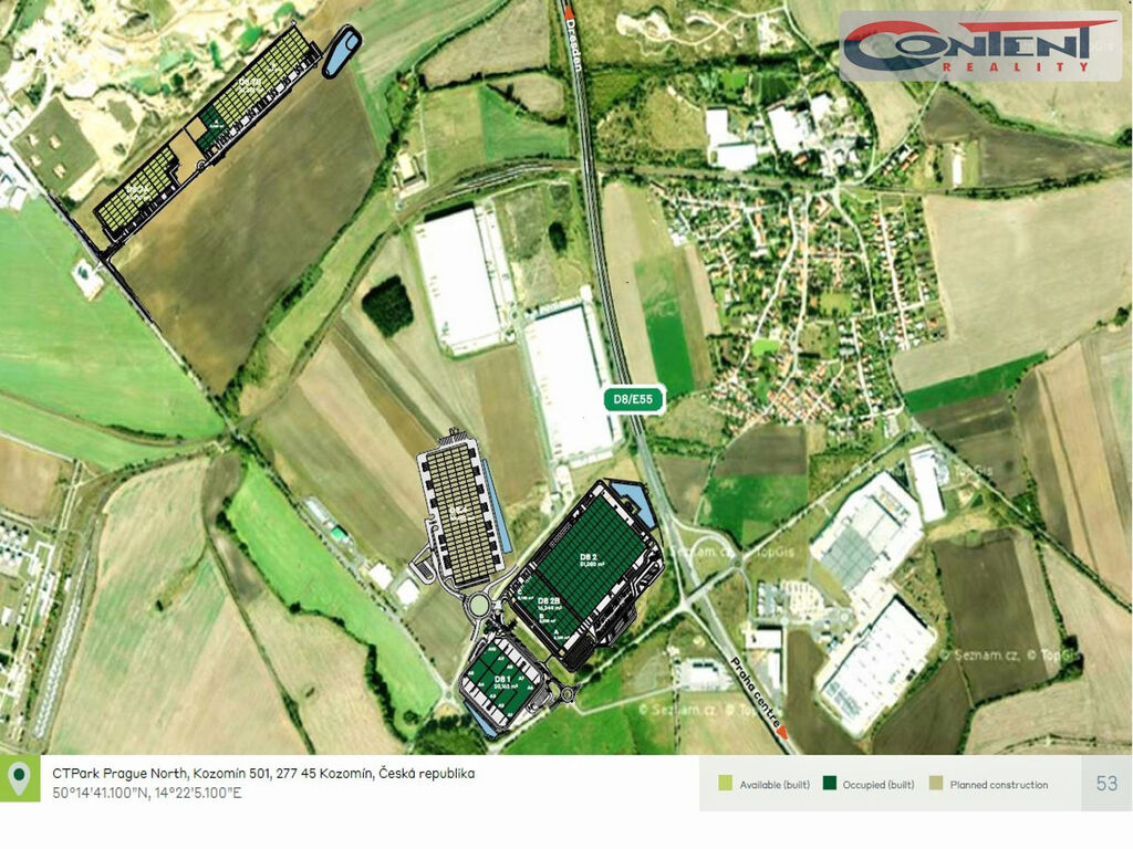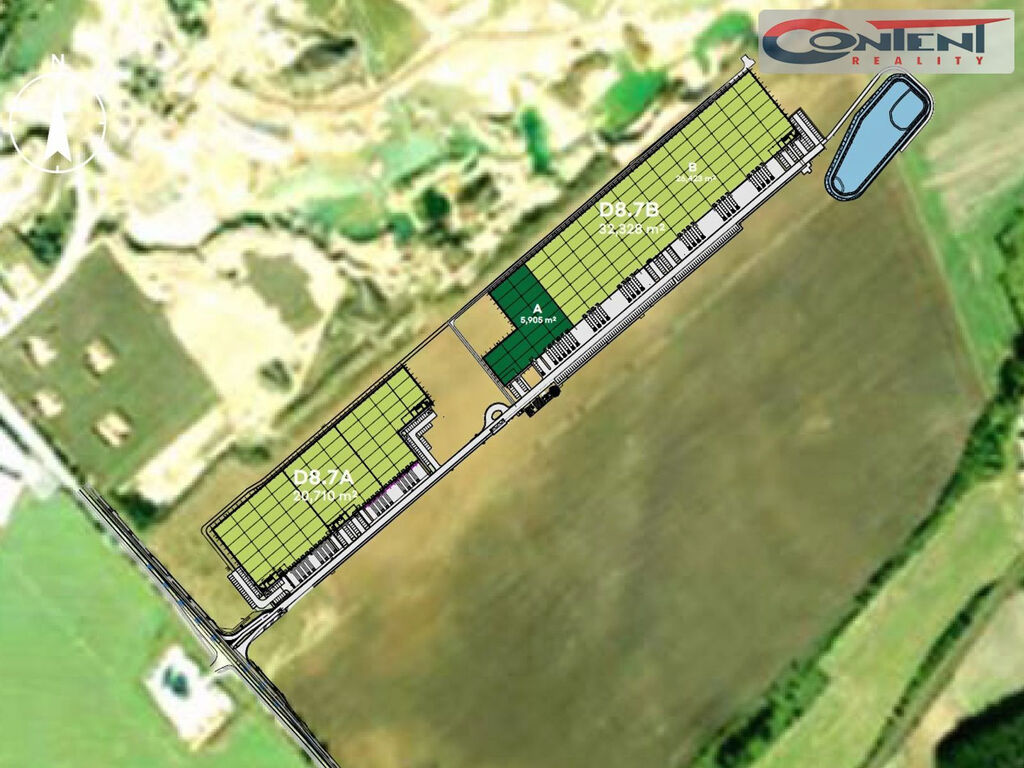 V zastoupení majitele a bez provize nabízíme prostory vhodné pro sklad nebo výrobu, v blízkosti dálnice D8 Exit 9 Úžice. Novostavba samostatné industriální budovy s celkovou výměrou 32326 m²: