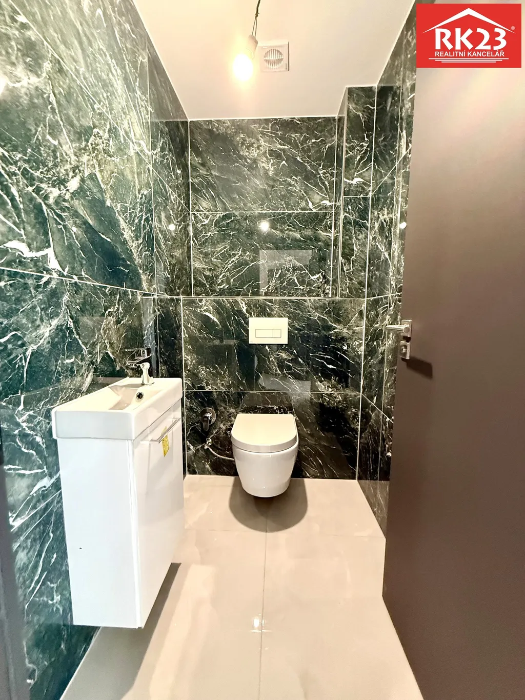 Nabízíme k prodeji moderní novostavbu rodinného domu ve vyhledávané lokalitě Klimentov v obci Velká Hleďsebe. Jedná se o dům situovaný vpravo. Nemovitost je dvoupodlažní s užitnou plochu domu 200 m2. Na prvním podlaží se nachází obývací pokoj s kuchyňským koutem, který je připraven na instalaci nové kuchyně dle vlastních představ, dále terasa s krásným výhledem na obec a kostel, ložnice s koupelnou a toaletou, technická místnost a samostatná toaleta. Na druhém patře se nachází ložnice se vstupem na terasu, s vlastní koupelnou a šatnou, dále dva pokoje s balkonem a další koupelna. Všechny místnosti jsou prostorné s dostatkem denního světla. Dům je postaven v elegantním designu s použitím nejnovějších technologií a kvalitních materiálu. Je zde podlahové vytápění, které je řešeno tepelným čerpadlem a stejně tak i ohřev vody. Dům je napojen na veřejnou kanalizaci a vodovodní řad, je velmi úsporný, s nízkými náklady na provoz.