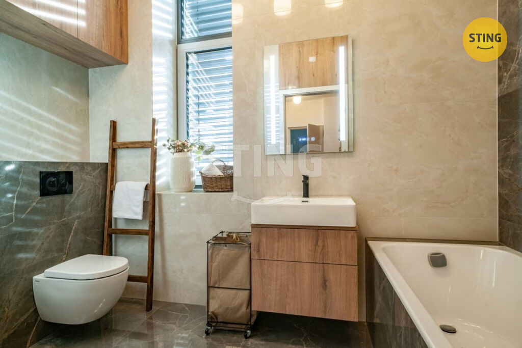 Tři samostatné ložnice nabízí dostatek soukromí a klidu, vhodné pro rodinu, home office i hosty. V celém bytě byly použity prémiové materiály: