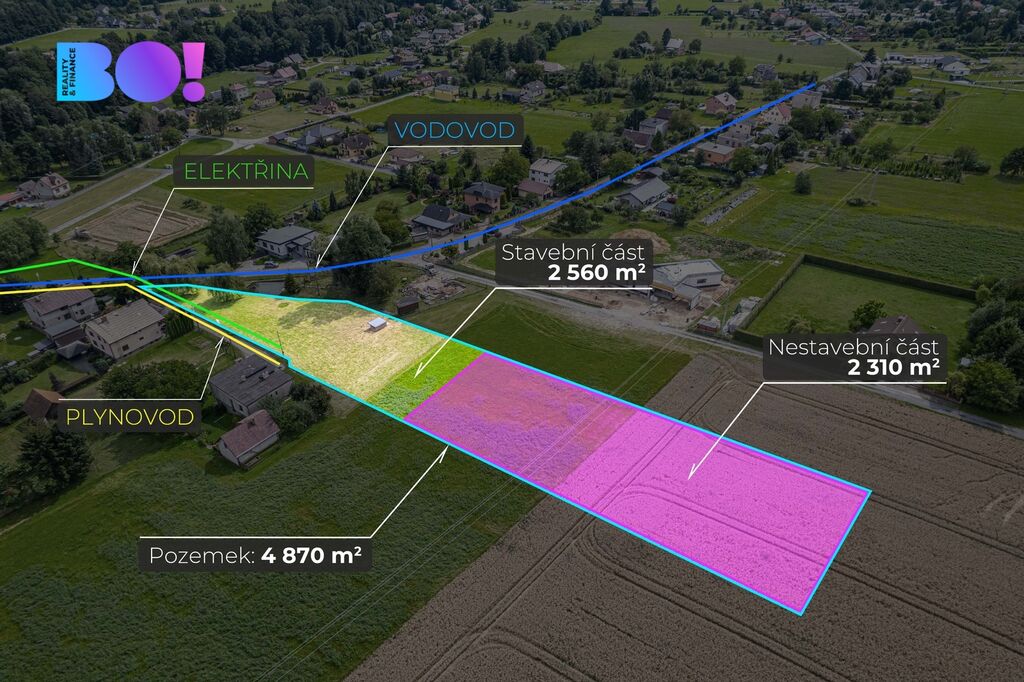 Nabízíme ke koupi stavební pozemek o výměře 2 560 m² nacházející se v klidné části města Třinec – Konská. Pozemek je součástí větší parcely o celkové výměře 4 870 m², přičemž cca 2 560 m² je dle územního plánu určeno k výstavbě rodinných domů. Zbývající část tvoří zeleň, ideální například pro zahradu, sady nebo relaxační zónu.