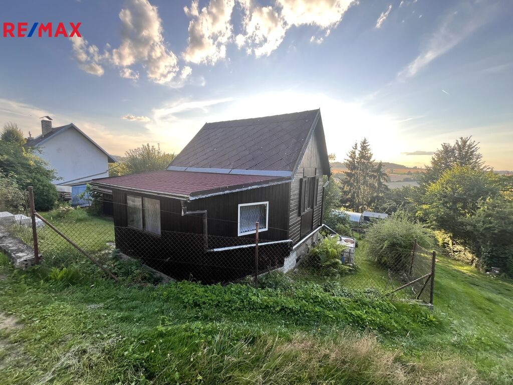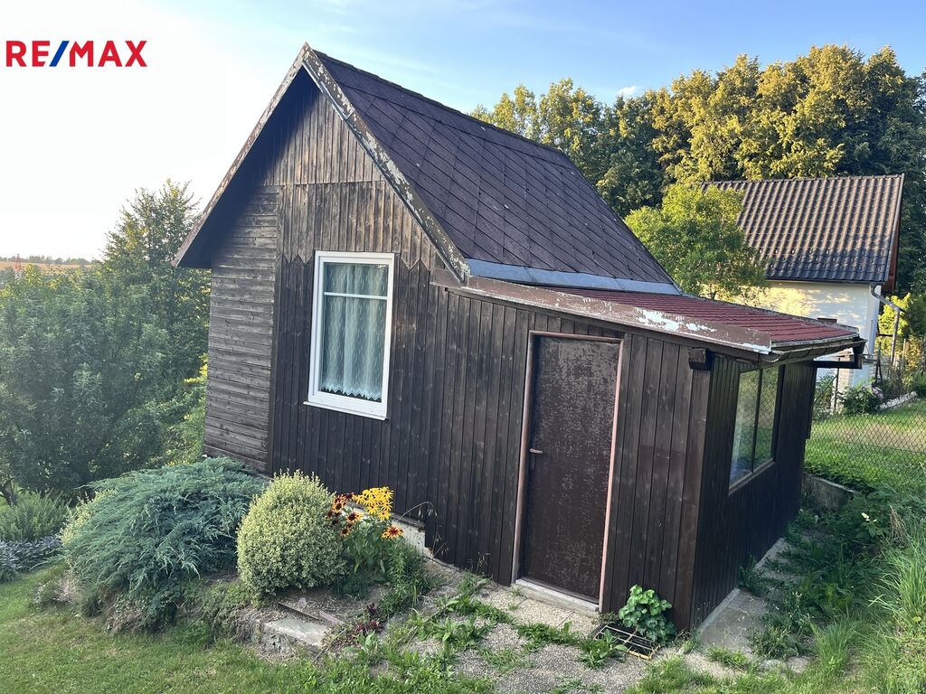 Jedná se o prodej chaty na vlastním pozemku o celkové výměře 391m2 s chatkou tvořenou vstupním pokojem, spojovací chodbu, WC a hlavním pokojem v lokalitě pod sv. Annou na okraji Pelhřimova. Část chaty o ploše cca 15m2 je podsklepená. Vedle chaty se nachází zahradní domek na nářadí o ploše cca 5m2. Vodovod je koloniální v rámci zahradkářské kolonie, elektřina vlastní 230V. Pro více informací volejte makléře nabídky.