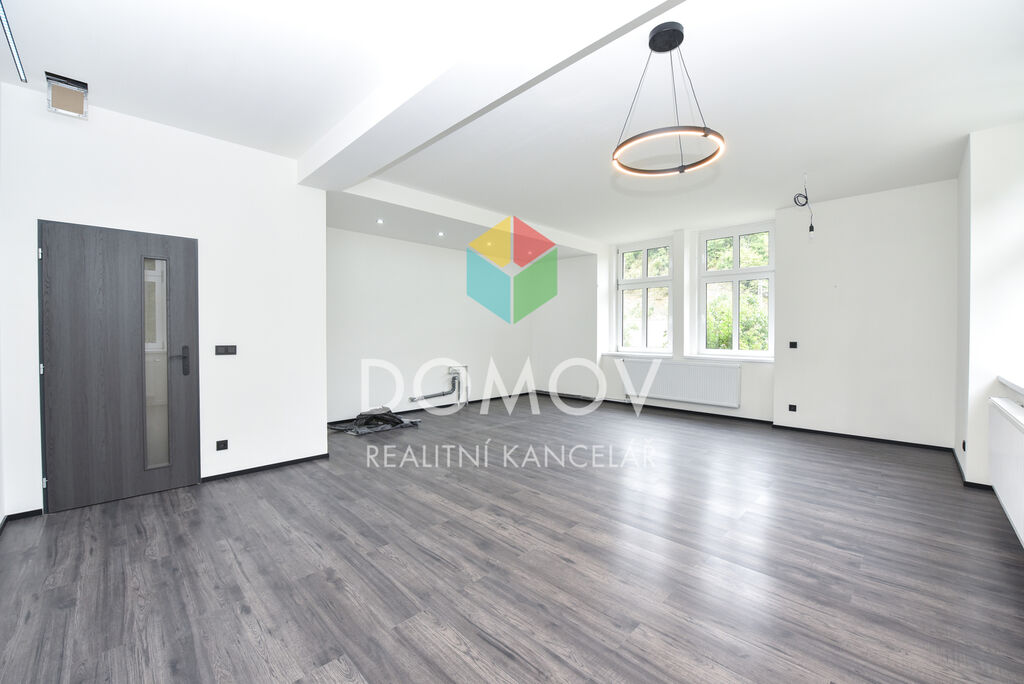 Bytová jednotka nabízí velkorysé dispoziční řešení 4+kk, s kvalitní podlahovou úpravou – celoplošná anhydritová stěrka s položenou laminátovou plovoucí podlahou. Vytápění je řešeno ústředním topením napojeným na kotel na tuhá paliva, umístěný v samostatné technické místnosti (15,1 m²) se vstupem zvenku. Druhá technická místnost (4,2 m²) slouží jako zázemí s elektrickým bojlerem a je zde také umístěn vlastní změkčovač vody.
