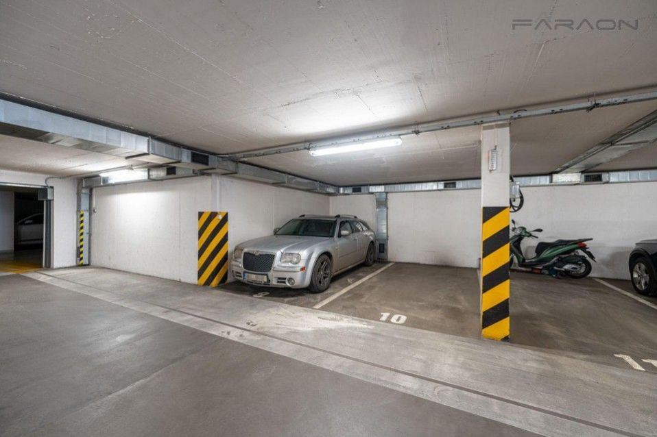 K bytu náleží sklep (5,40 m2) a garážové stání, další možnost parkování je volně před domem. K dispozici je společná sušárna a zahrada s dětským hřištěm ve vnitrobloku.