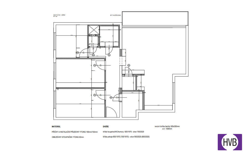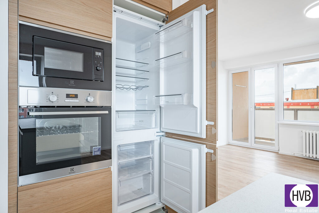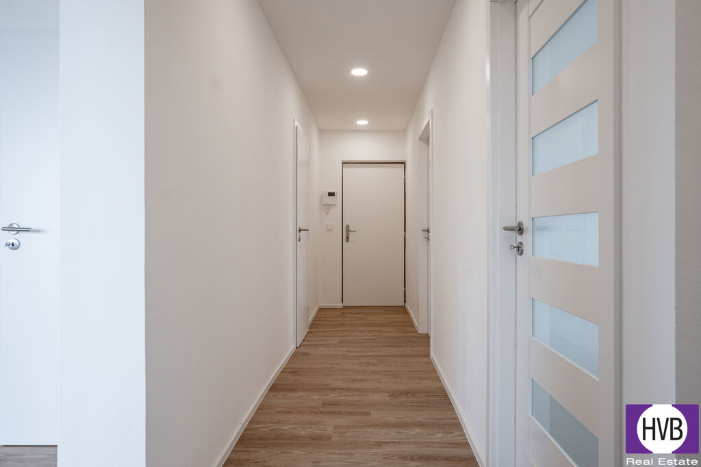 Dispozice: vstupní chodba, prostorný obývací pokoj s přímým vstupem na velkou lodžii volně navazuje na plně vybavenou kuchyňskou linku, tři obytné místnosti, koupelna s vanou, toaleta a dvě komory.