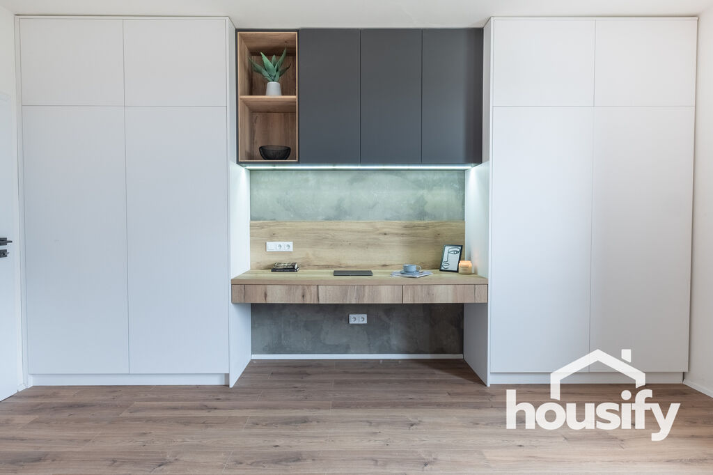 Byt prošel kompletní rekonstrukcí. Interiér byl navržen bytovou architektkou a dominuje mu praktický vestavěný nábytek na míru s množstvím úložného prostoru. Součástí vybavení je i kuchyňská linka se spotřebiči ve vysokém standardu (trouba, varná deska, digestoř, lednice), které jsou stále v záruce.