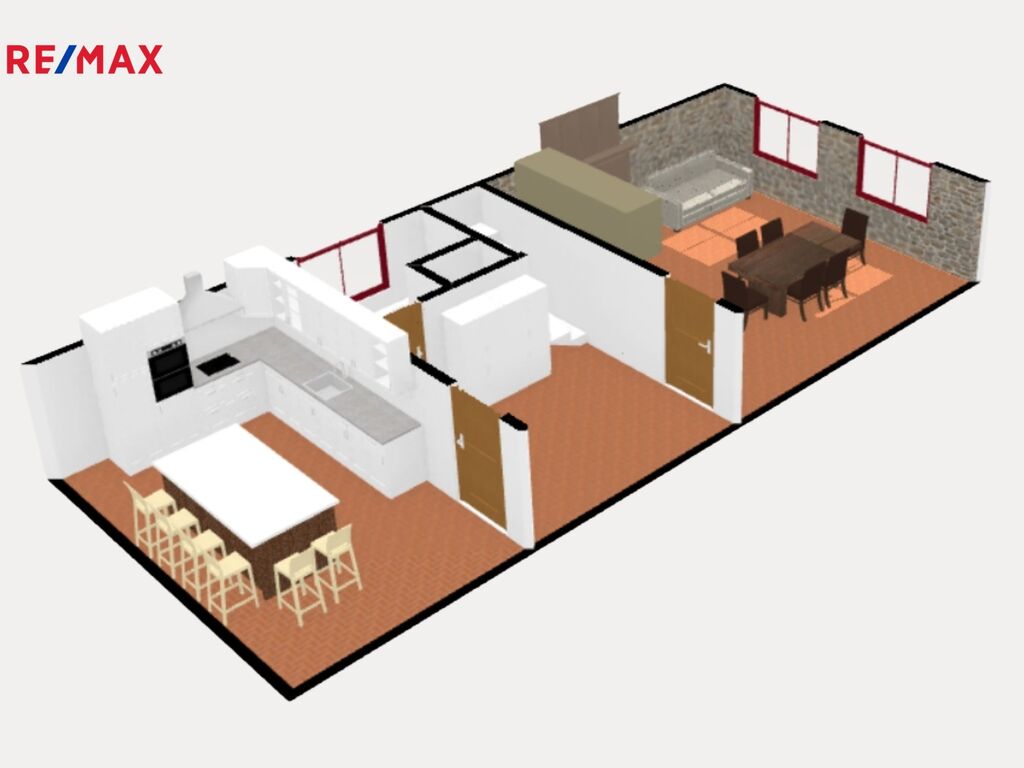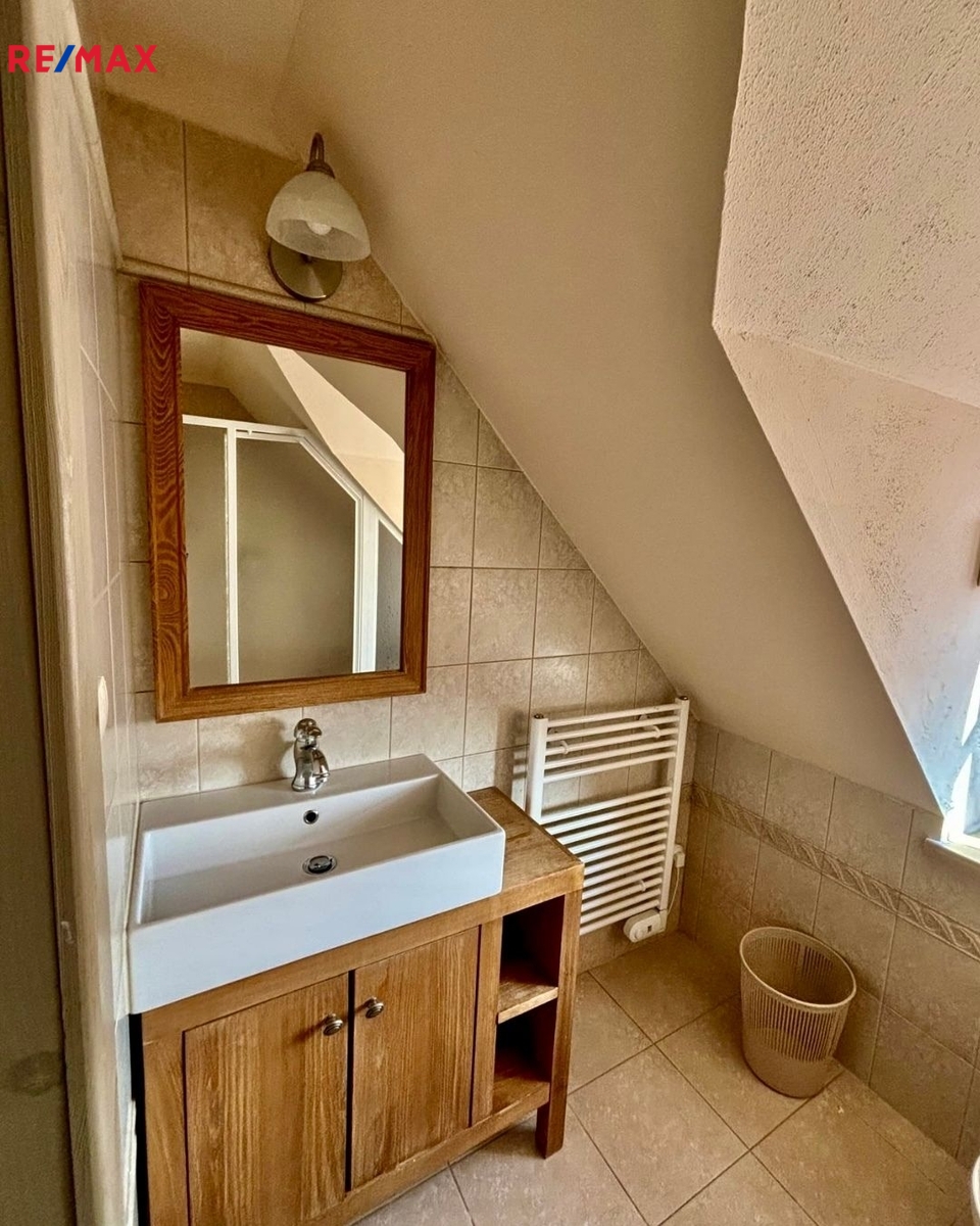 Byt má rozlohu 120 m² a je kompletně vybavený včetně spotřebičů i nábytku. V přízemí se nachází světnice se staročeskou pecí, kuchyňským koutem (elektrická varná deska, dřez, lednice, mrazák) a posezením, dále samostatná plně vybavená kuchyně (indukční deska, horkovzdušná trouba, lednice, mrazák, myčka na nádobí, dřez) s jídelním stolem a koupelna s vanou. V chodbě je možnost připojit pračku a sušičku ve vestavěných skříních. V patře jsou tři samostatné ložnice a dvě další koupelny se sprchovým koutem.