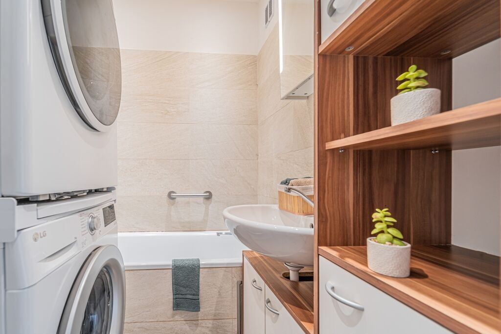 Jednotka prošla částečnou rekonstrukcí. Kuchyňská linka je vybavena moderními vestavěnými spotřebiči – indukční varnou deskou a troubou značky Bosch, myčkou Mora a nerezovým dřezem. V předsíni se nachází dvě prostorné vestavěné skříně, v jedné z ložnic je nová šatní skříň přes celou stěnu. Toaleta je osazena závěsným systémem Geberit. Na podlahách je položeno lino. Byt disponuje zděným jádrem s elektrickými rozvody v mědi, obvodové stěny mají rozvody elektřiny původní.