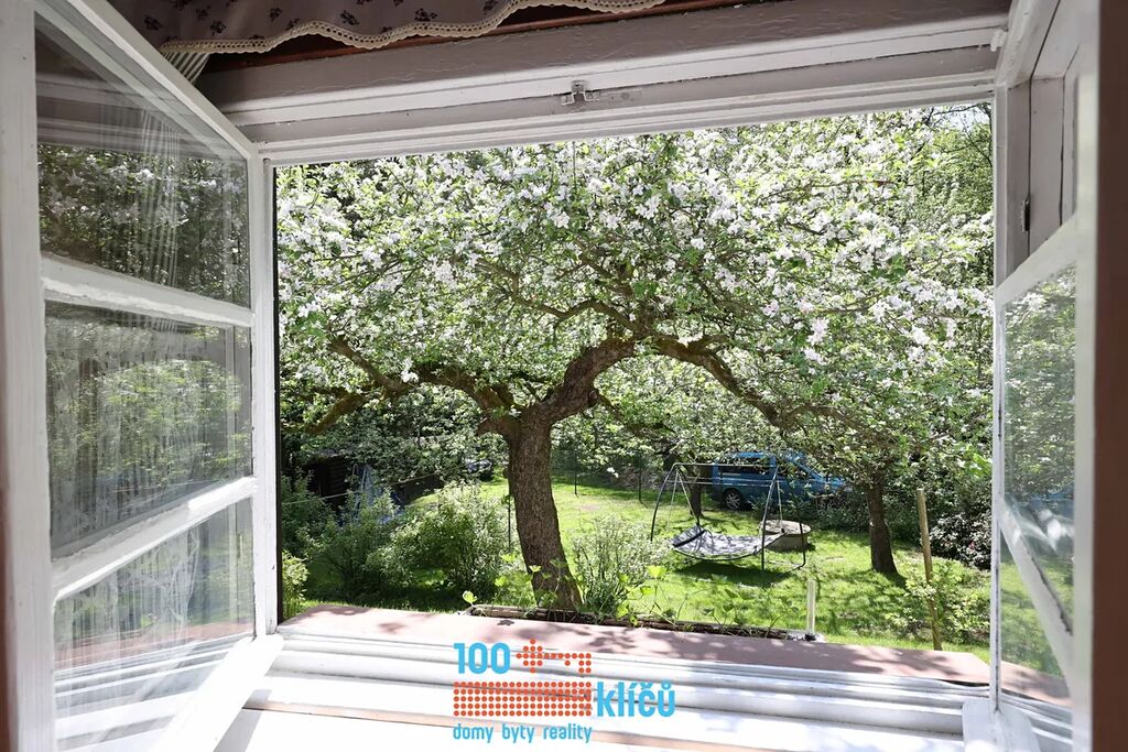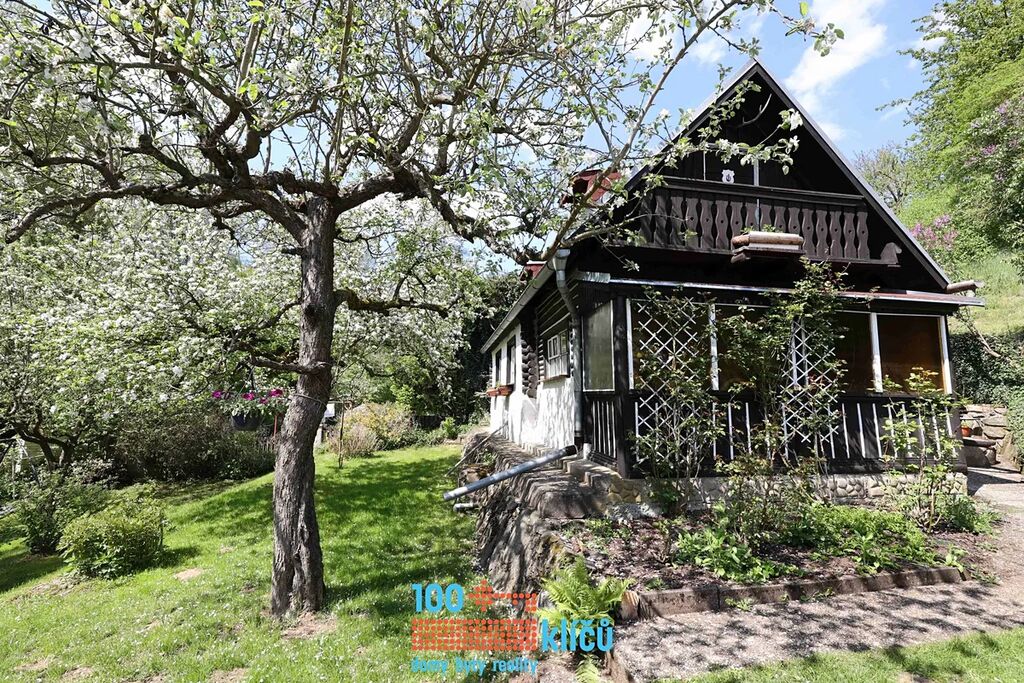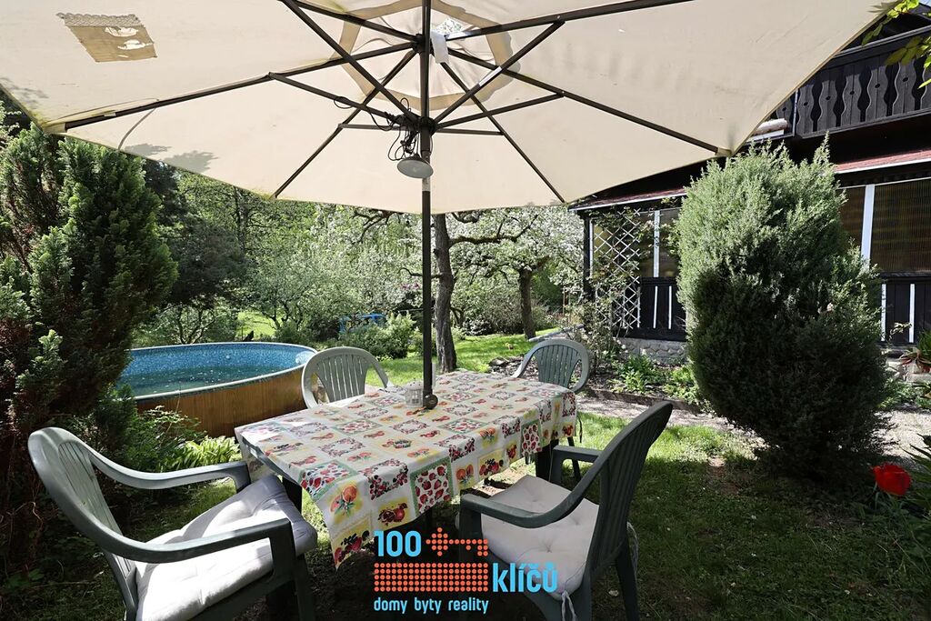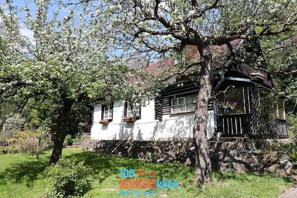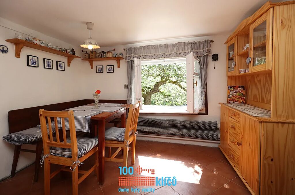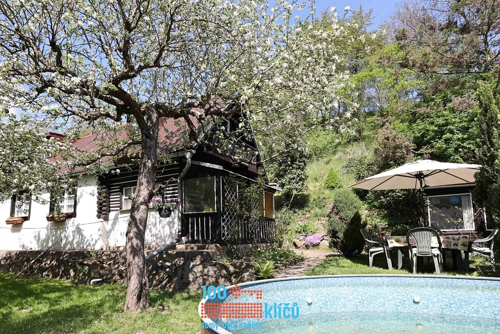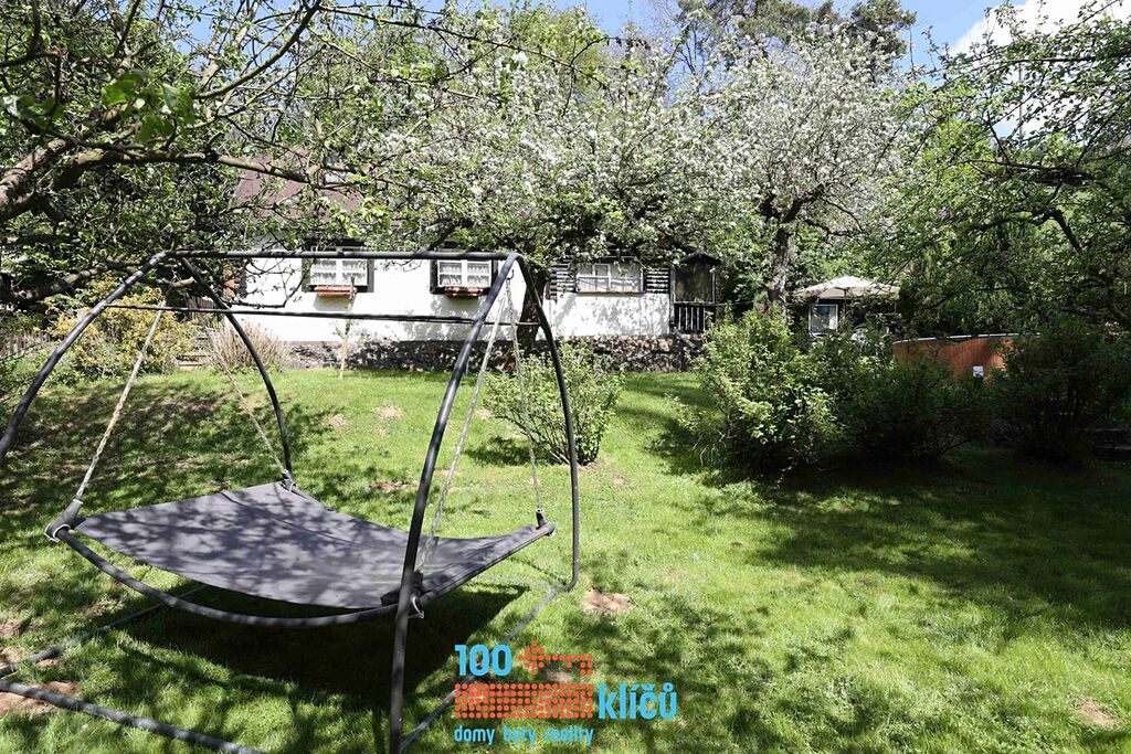 Realitní kancelář 100klíčů Vám nabízí částečně roubenou chalupu 3+1 uprostřed nádherné přírody posázaví s možností celoročního užívání. Nachází se v osadě Důle v Hradových Střímelicích, klidné části obce Stříbrná Skalice, jen 30 km jihovýchodně od Prahy. Celková rozloha pozemku je 1054 m2. Na zahradě se vzrostlými stromy je k dispozici bazén, garáž, kůlna, dětský domek a samostatný sklípek. Pitná voda je odebírána z vlastní studny. Odpadní vody jsou svedeny do jímky. Vytápění zajišťují radiátory s kotlem na tuhá paliva, dále jsou v kuchyni také samostatná kamna.