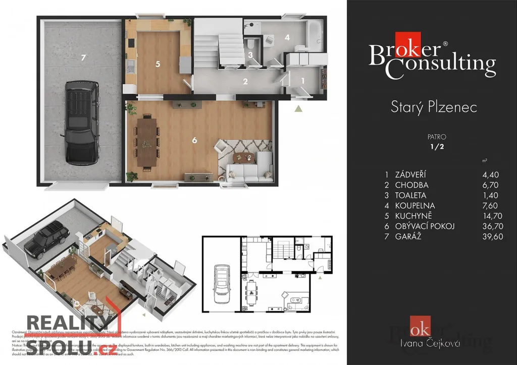 • prostorná garáž: 39,6 m² (místo pro vůz i úložný prostor)
