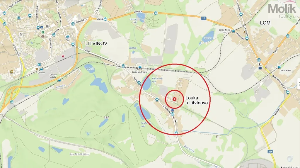 Zděná, suchá řadová garáž se nachází v Louce u Litvínova.