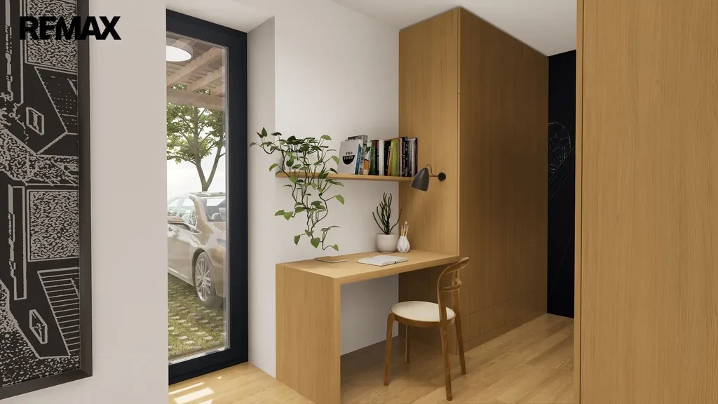 Jednopodlažní dům s obytným podkrovím o celkové užitné ploše 134,4 m² a dispozicí 5+kk je situovaný na rovinatém terénu. Dům se prodává na klíč. To zahrnuje základovou desku, hydroizolaci a tepelnou izolaci, stavbu z keramických pálených cihel o minimální tloušťce zdiva 440 mm včetně překladů a věnce, kompletní zastřešení pálenou keramickou taškou, klempířské prvky, hliníkové okenní rámy s trojsklem, dále oplocení, pergolu, finální fasádu, bílou omítkovinu a kompletní dřevěné prvky. Pro další informace ohledně standardů kontaktujte makléře nabídky. Vnitřní uspořádání je navrženo tak, aby charakter navrženého domu maximalizoval možnosti využití celého pozemku.