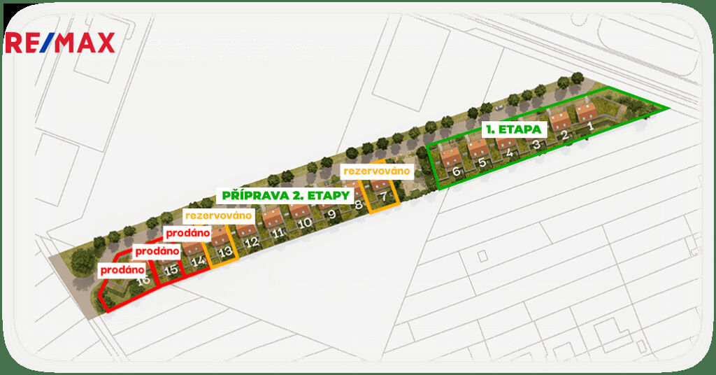 Výstavba byla zahájena 3/2024. Plánované dokončení staveb v rámci první etapy šesti domů je na konci roku 2026. V rámci projektu pro vás připravujeme a rádi vám nabídneme zvýhodněné úvěrování, které je připravené tomuto projektu na míru naším finančním poradcem po konzultaci a upřesnění vstupních informací s jednotlivými zájemci o koupi.