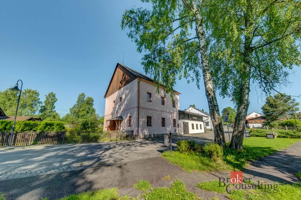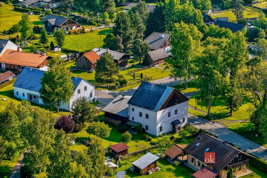 Celá nemovitost se skládá z volarské roubenky alpského typu (v perfektním stavu!) a pak ze zděné dvoupodlažní budovy z počátku 20. století. Dům je zateplený, po relativně nedávné rekonstrukci, pečlivě udržovaný a v dobrém stavu. Roubenka má dispozici 2kk, dolní bytová jednotka zděného domu 3+1 a horní 4+1. Dům disponuje také řadou dalších technických místností jako garáž, sklep, kotelna, velká dílna nebo prádelna. Zvlášť atraktivní je velkorysý půdní prostor, který nabízí možnost 4. apartmánu s vysokými stropy a krásnými výhledy do okolí.
