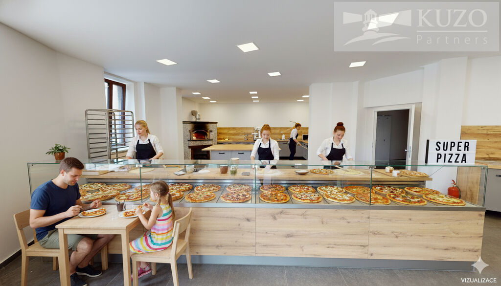 Multifunkční prostor s kolaudací: Prostor je zkolaudován jako výroba cukrařina a pekařina s možností rozšíření o lahůdky a teplou kuchyni. Je zde také příprava pro obchodní část (tzv. take away). Můžete zde vytvořit prodejnu s pekárnou, cukrárnou, nebo rychlé občerstvení (pizzerie, kebab, čína a další).