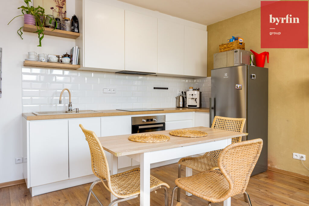 Byt je součástí kompletně revitalizovaného domu s pouhými 6 byty (PENB C), takže tu najdete klid, soukromí a příjemnou atmosféru. Kuchyňská linka je plně vybavena spotřebiči, v ložnici najdete vestavnou šatní skříň a díky chytře řešené dispozici má každý centimetr své místo. Slunce sem svítí po celý den a terasa se zahradou jsou ideálním místem pro ranní kávu, odpolední relax i večerní posezení s přáteli.