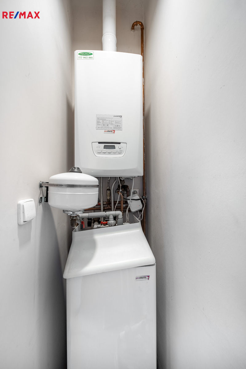 Byt o celkové ploše 144,5 m² je kompletně zařízený, včetně kuchyňské linky na míru s vestavěnými spotřebiči. Vytápění a ohřev vody je zajištěn plynovým kotlem s radiátory a elektrickým podlahovým topením, které lze individuálně regulovat pro maximální pohodlí.