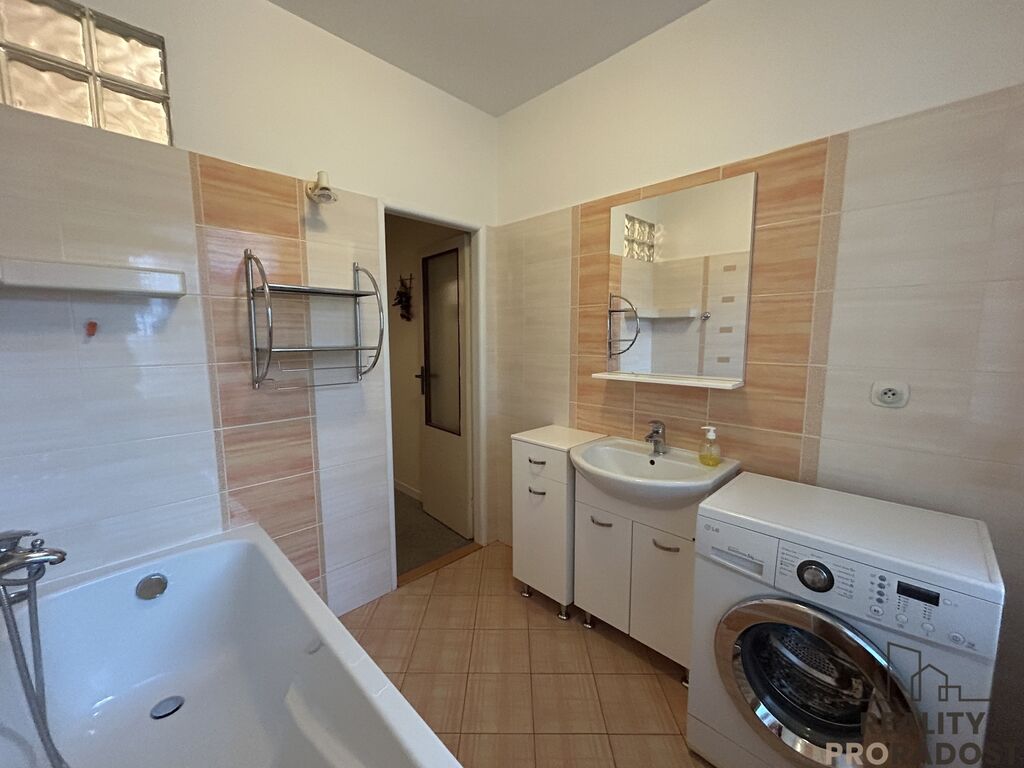 Byt je plně vybaven nábytkem, v chodbě jsou vestavné skříně, které vám poskytnou bohatý úložný prostor, šatna, 2 prostorné lodžie vás uchvátí, parkování v uzavřeném dvoře, zahrada s altánem, to vše jsou benefity tohoto bydlení.