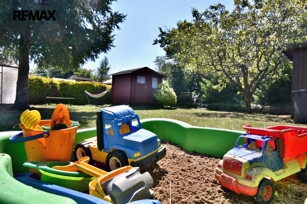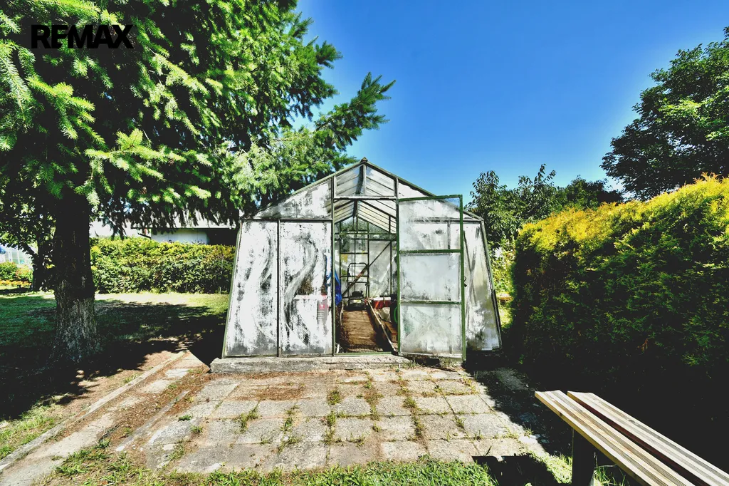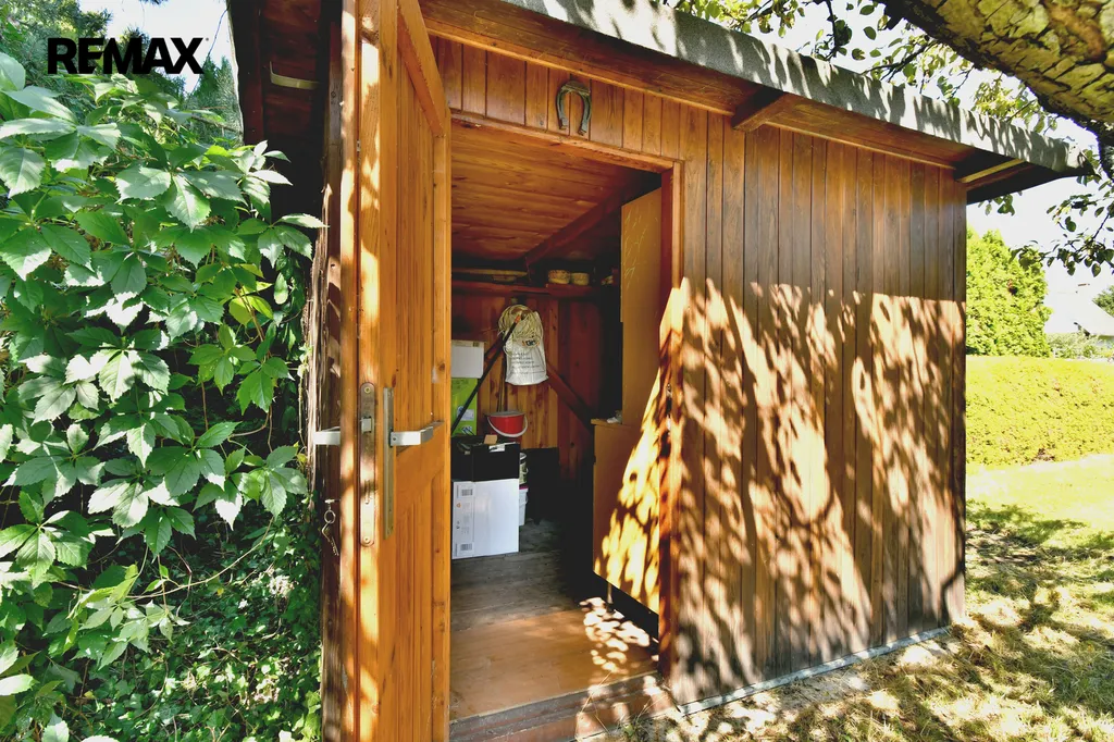 Na pozemku stojí dřevěná chatka v perfektním stavu, která poskytuje útulné zázemí pro odpočinek po práci na zahradě. K dispozici je také skleník, ideální pro pěstování nejrůznějších druhů zeleniny a rostlin, a domek na nářadí, který pomáhá udržet zahrádku v perfektním pořádku.