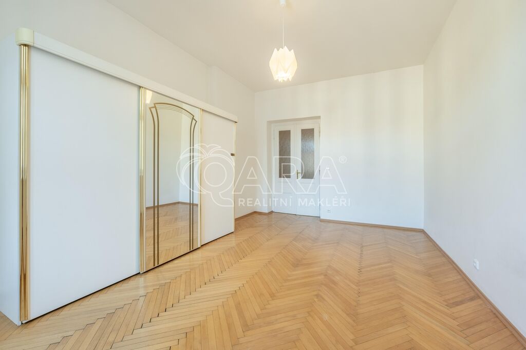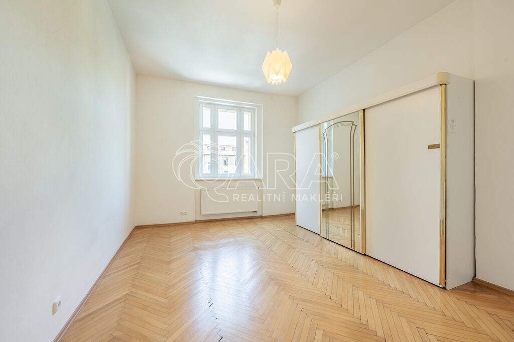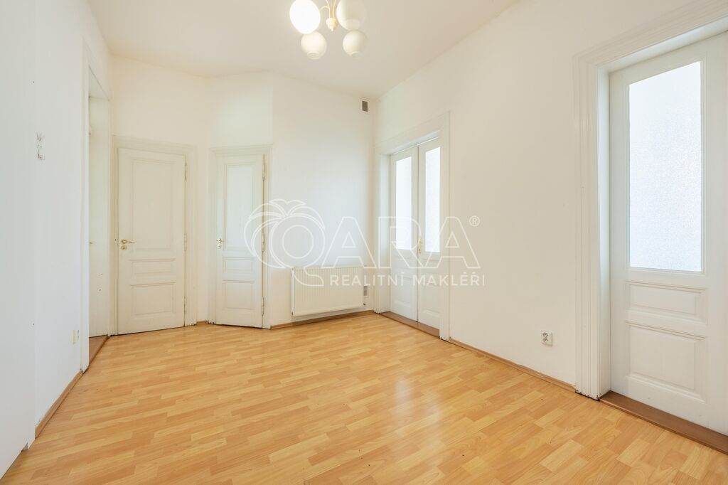 V domě i v bytě vás potěší původní prvky, parketové podlahy a dvoukřídlé dveře.