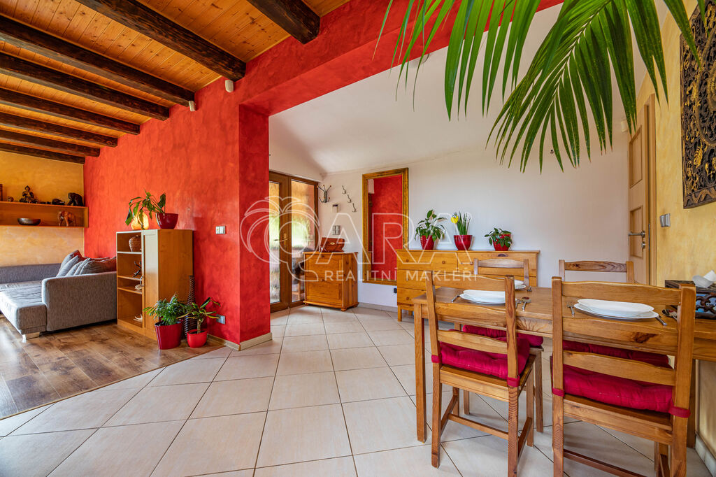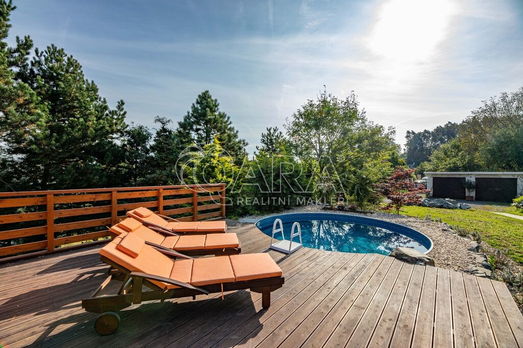 Součástí pozemku je, momentálně obydlený, částečně podsklepený rodinný dům o zastavěné ploše cca 120 m² a dvougaráž o rozloze cca 50 m². Dům i garáž jsou možné přestavět, zrekonstruovat a využívat jako vedlejší stavby, například jako ateliér, dům pro hosty, wellness apod., případně tyto je možné odstranit.