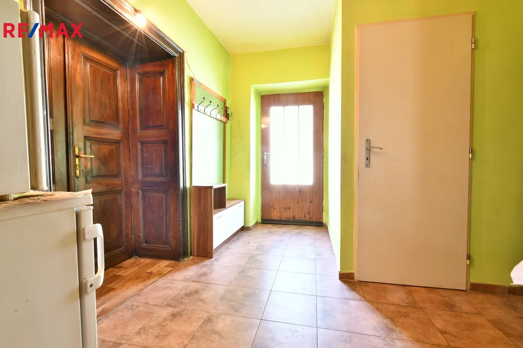 V přízemí se nachází vstupní chodba s malou halou, nová koupelna s wc, navazující chodba, kde je umístěný nový sprchový kout, s východem na zahradu, vpravo navazující průchozí obývací pokoj a ložnice, vlevo průchozí kuchyně a další pokoj s dveřmi na chodbu. Do podkroví vede dřevěné schodiště, kde je spousta prostoru na rozšíření obytného prostoru a dále se tam již nachází obytný prostor, dříve k bydlení užívaný.