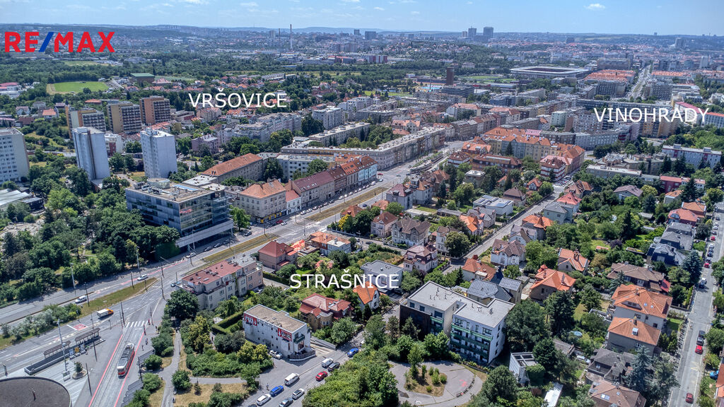Nabízíme k prodeji historickou řadovou vilu z roku 1910, která se nachází v klidné vilové ulici U nových vil– Strašnicích, jen několik desítek metrů od stanice metra A – Strašnická.