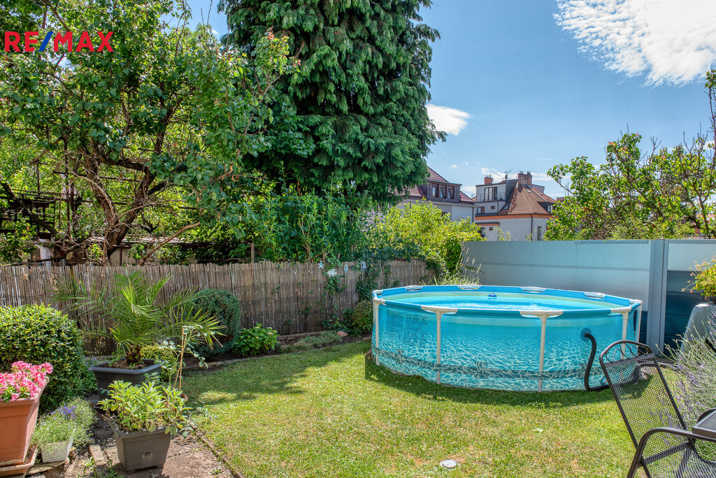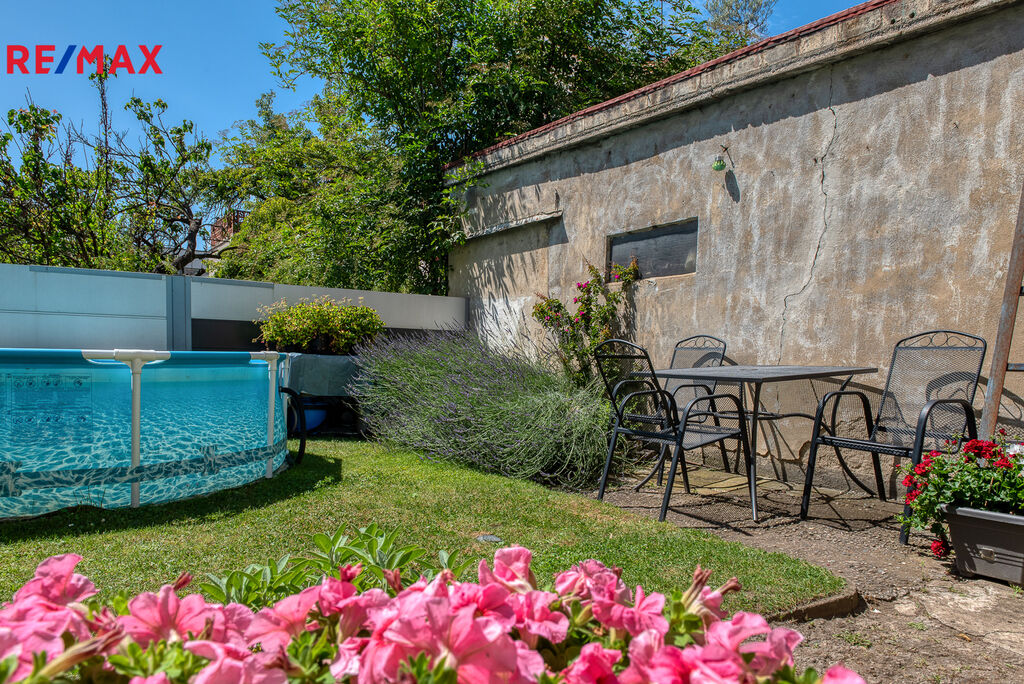 Pozemek o rozloze 264 m² zahrnuje udržovanou západně orientovanou zahradu a garáž vystavenou v roce 1947.