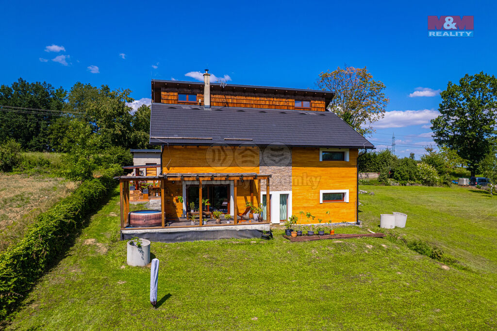 Nabízíme k prodeji architektonicky unikátní rodinný dům v malebné části obce Žermanice. Tento stylový cihlový dům s užitnou plochou 215 m² a pozemkem o celkové rozloze 1500 m² nabízí komfortní bydlení na okraji obce s nádherným výhledem do údolí. Dispozice domu zahrnuje 6 prostorných místností rozložených mezonetově do několika úrovní. Mezonetový prostor spojuje kuchyň s obývacím pokojem, kde vysoké stropy a přiznané krovy vytvářejí vzdušnou atmosféru. Dům je vybaven dvěma koupelnami a moderním vytápěním pomocí elektrických rohoží a designových krbových kamen. Pokud hledáte klidné bydlení v blízkosti přírody s moderním designem, je tato nemovitost ideální volbou. Nezmeškejte tuto jedinečnou příležitost!