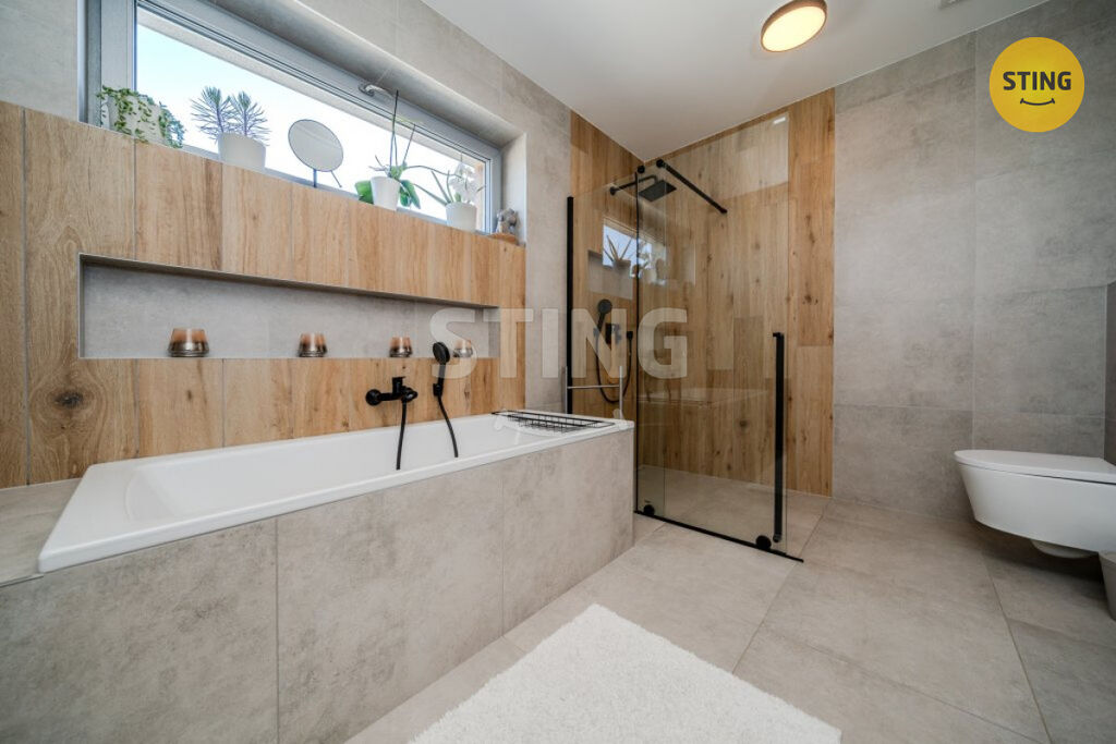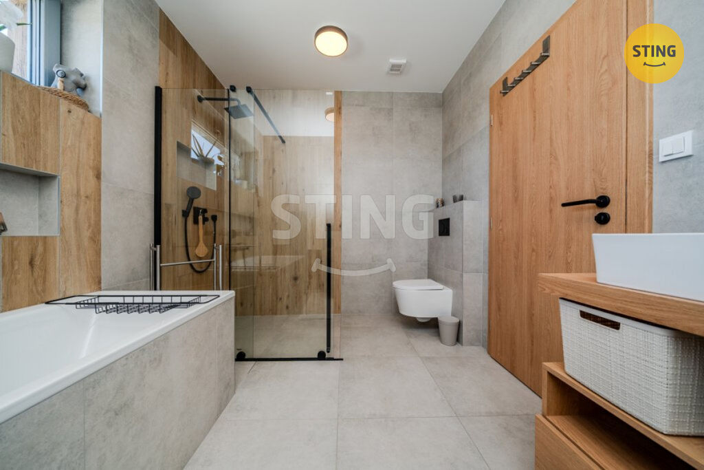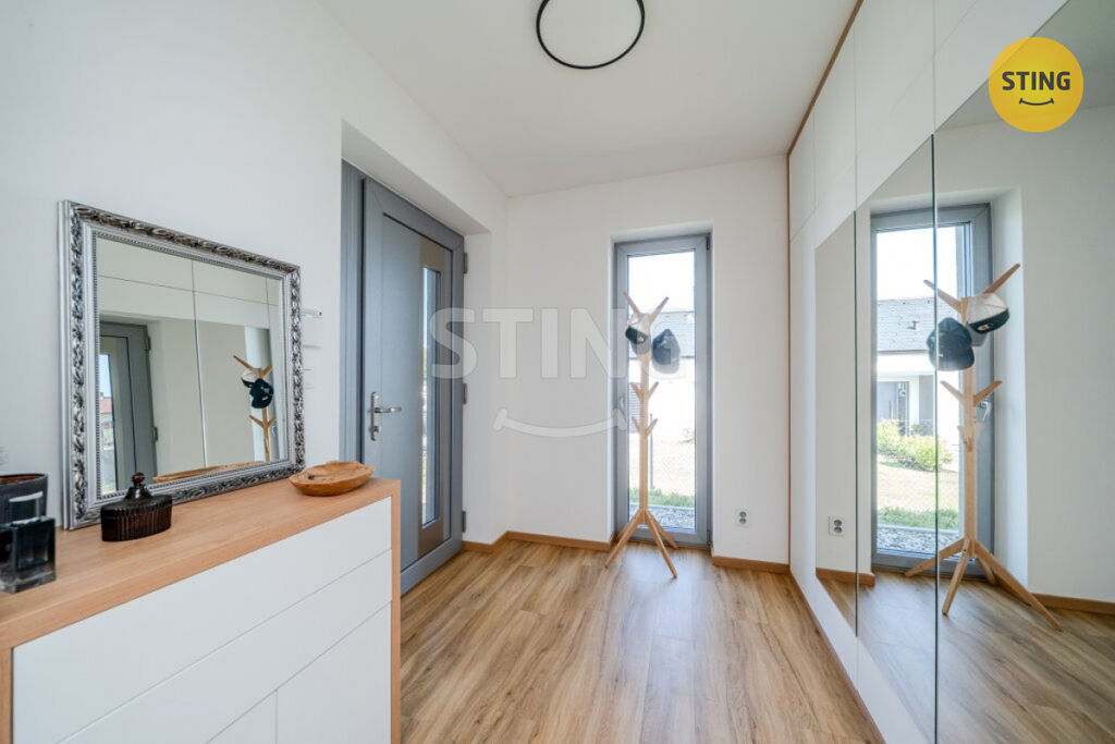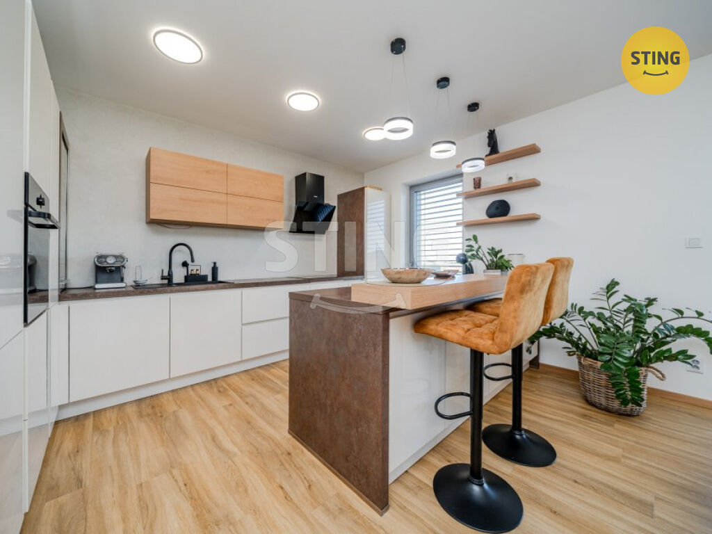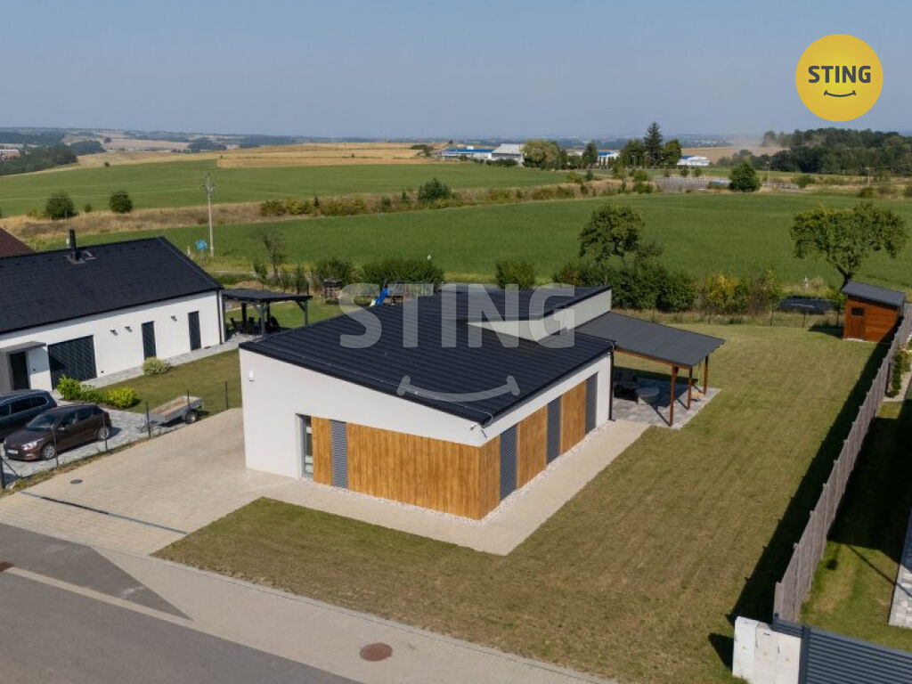 Rodinný dům o velikosti 4 + KK se nachází v klidné části Bílova. Jedná se o jednopodlažní rodinný dům, který je ve výborném stavu, kolaudace této nemovitosti byla v roce 2023. V domě se nachází zádveří, chodba, obývací pokoj propojený s kuchyní, dva pokoje, ložnice s šatnou, prostorná koupelna (vana, sprchovým kout, WC), dále samostatné WC, technická místnost. Z každé místnosti se francouzským oknem dostaneme na zahradu a z obývacího pokoje na zastřešenou terasu (zde je vyvedena elektřina). Součástí prodeje je kuchyně na míru včetně spotřebičů (myčka, digestoř, vestavěná trouba, varná indukční deska vše značky Gorenje), vestavěné skříně umístěné - jak v zádveří, tak v pokoji. K dispozici půdní prostor o velikosti 21m2.
